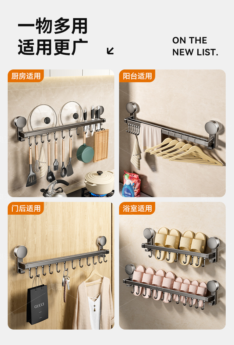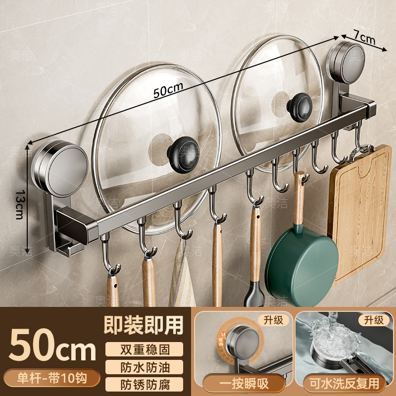 석션 컵 주방 보관 랙 걸이로드 펀치 프리 스포블 스푼 커터 통합 옷걸이 벽 장착 스토리지 랙