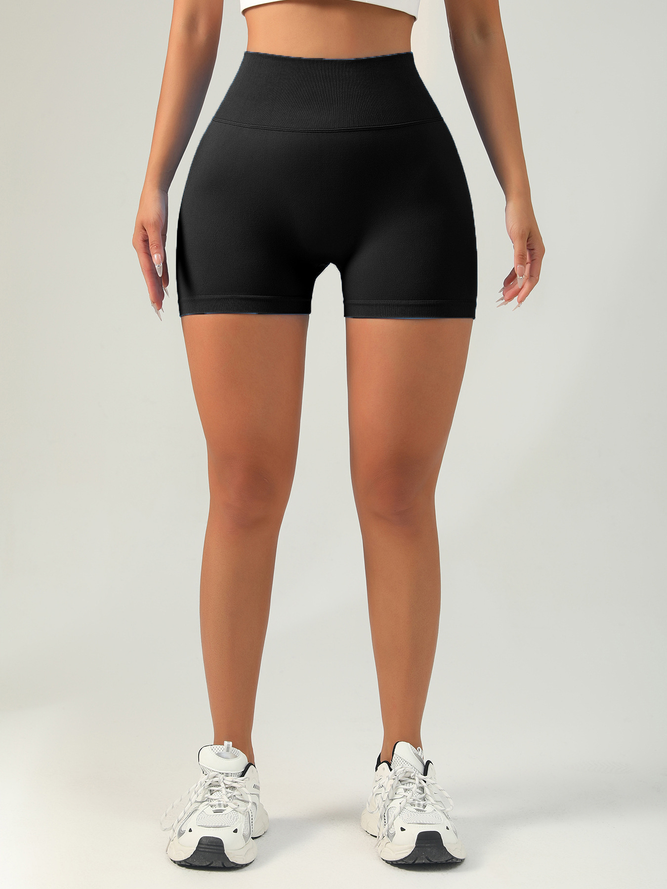 여성용 스플라이스 허리 자수 문자 스포츠 반바지, 니트 배 조절 복숭아 엉덩이 솔리드 컬러 통기성 요가 반바지 3부 바지스토어 가기