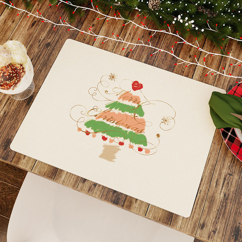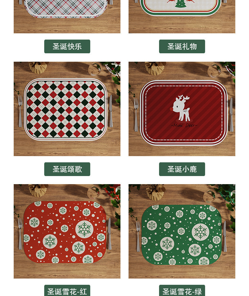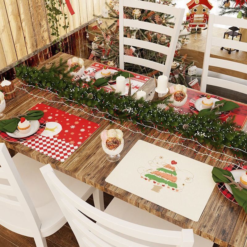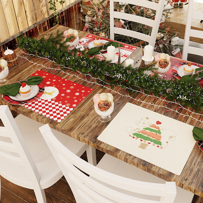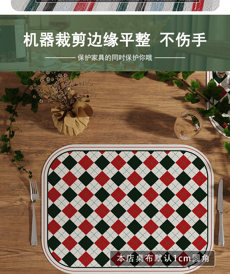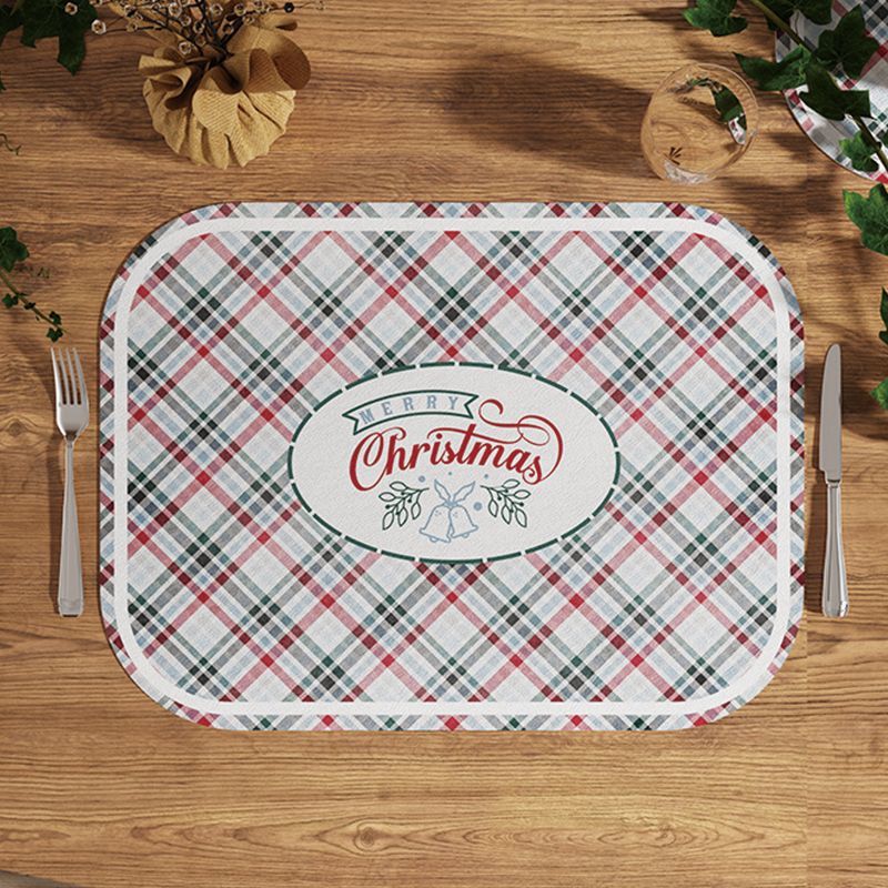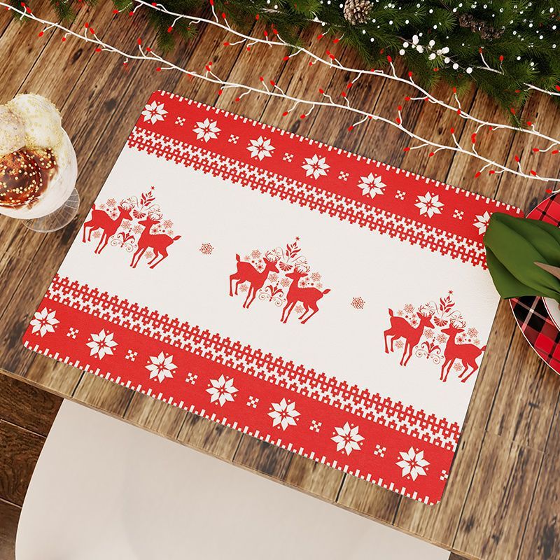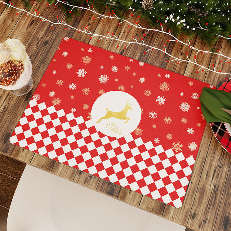 ∝크리스마스 디너 플레이트 매트 PVC 가죽 테이블 매트 방수 및 내유성 식탁보 단열 미국식 인 스타일 테이블 매트 LS스토어 가기