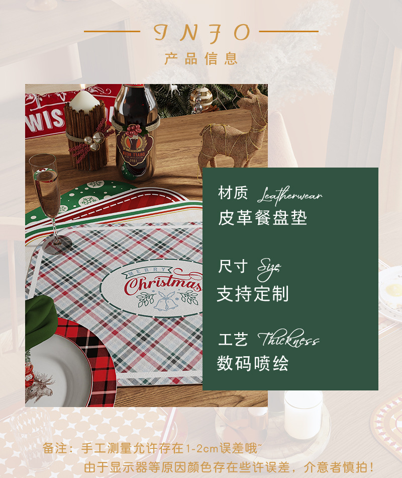 ∝크리스마스 디너 플레이트 매트 PVC 가죽 테이블 매트 방수 및 내유성 식탁보 단열 미국식 인 스타일 테이블 매트 LS