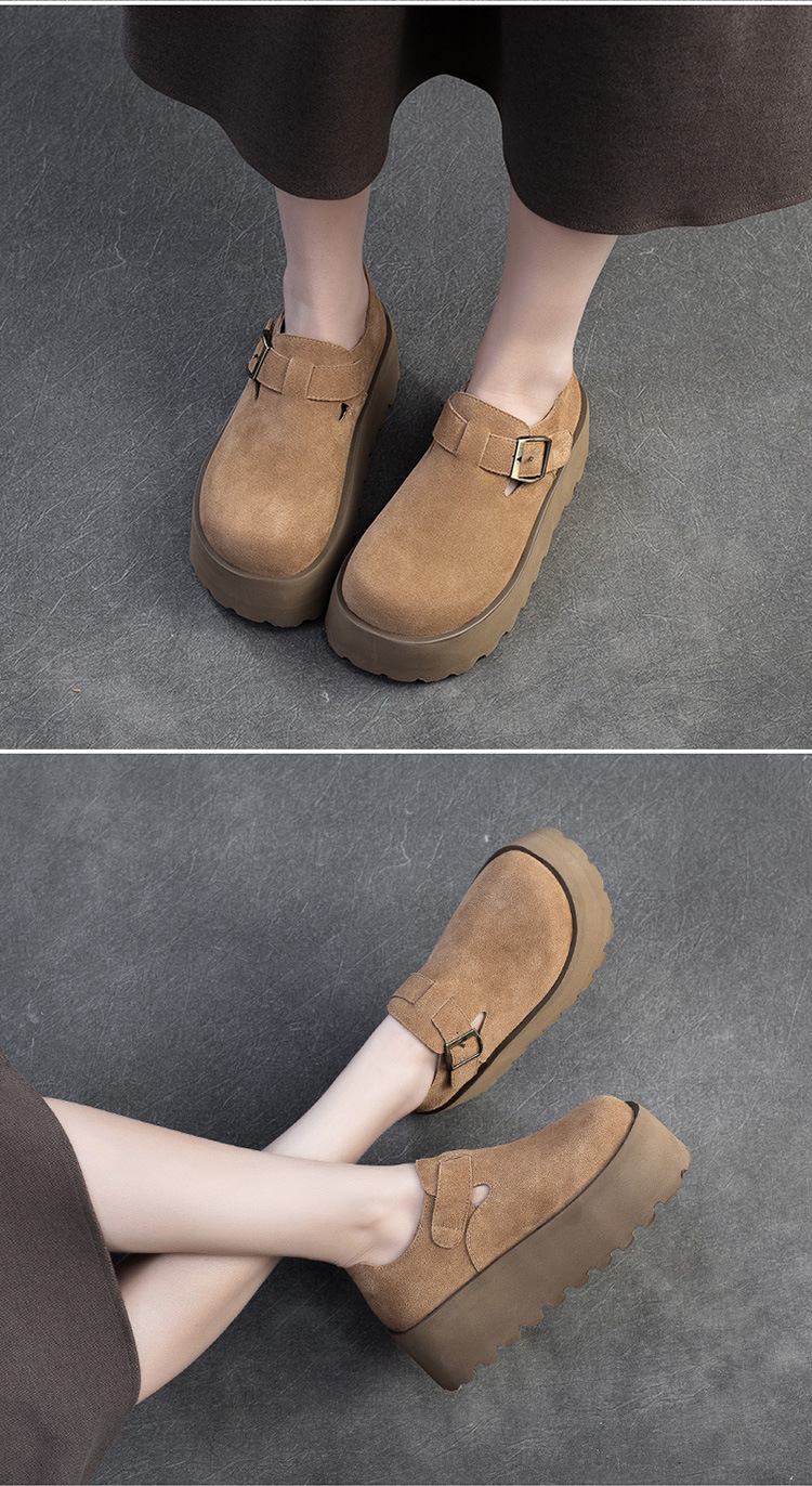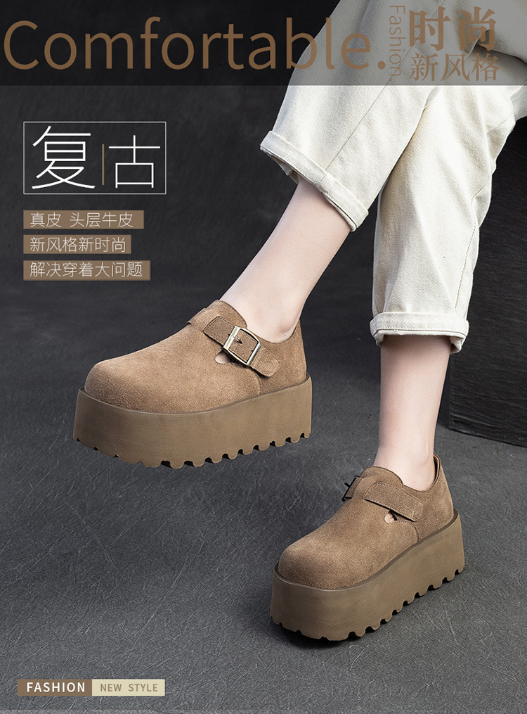 Xianxiang Luer 2025 봄 신작 레트로 버켄스탁 신발 게으른 플랫폼 힐 패션 신발 캐주얼 높이 증가 여성 신발스토어 가기