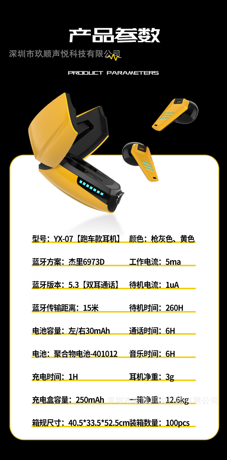 폭발 전용 국경 간 전용 YX07 블루투스 헤드셋 TWS 인 이어 지능형 소음 감소 e 스포츠 낮은 대기 시간 게임 헤드셋