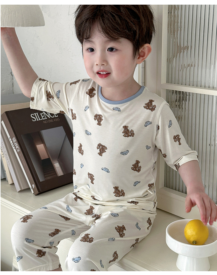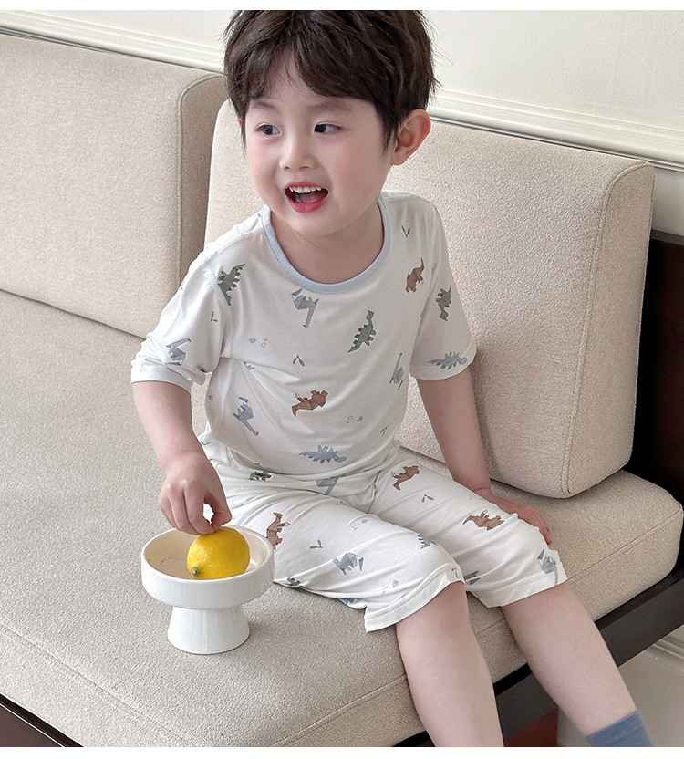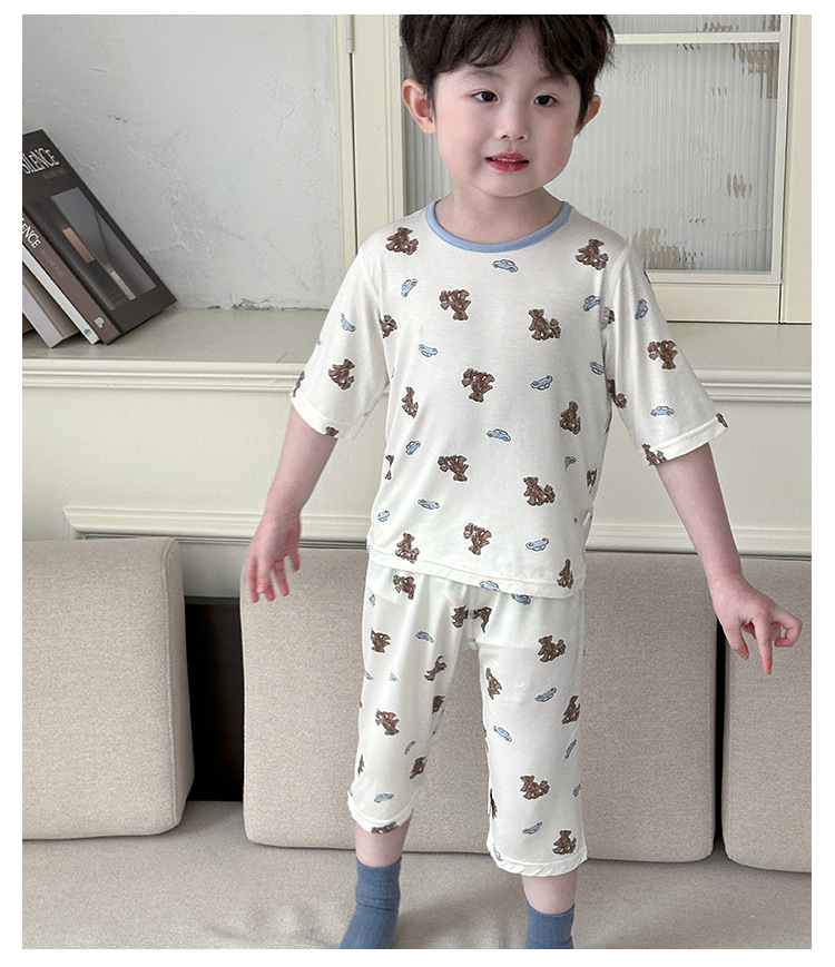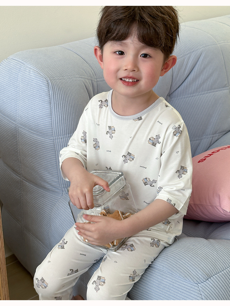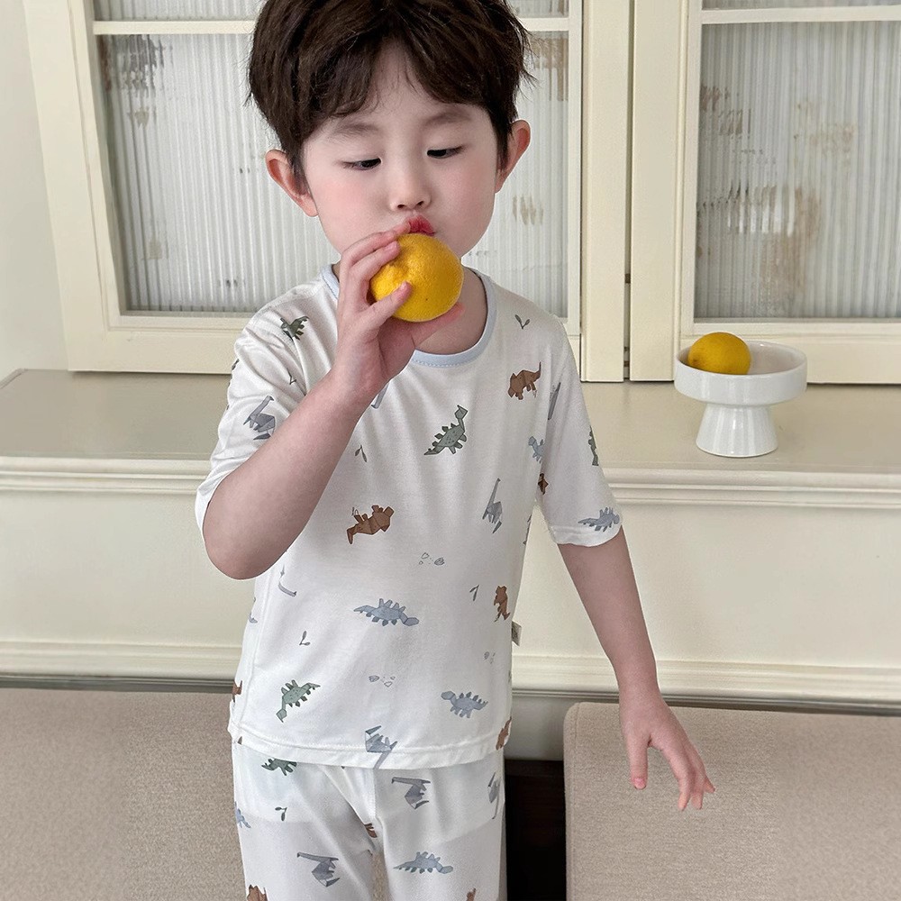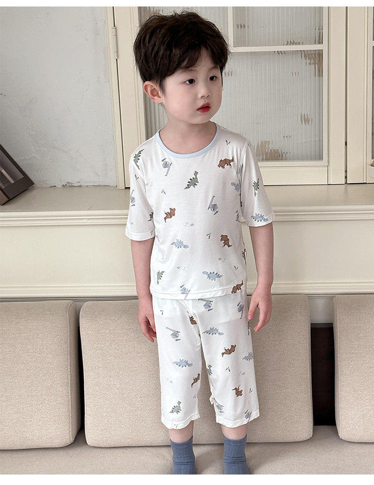 남아용 잠옷 2026년 신상 여름 얇은 7부 소매 세트 유코스 무봉제 홈웨어 어린이 에어컨복스토어 가기
