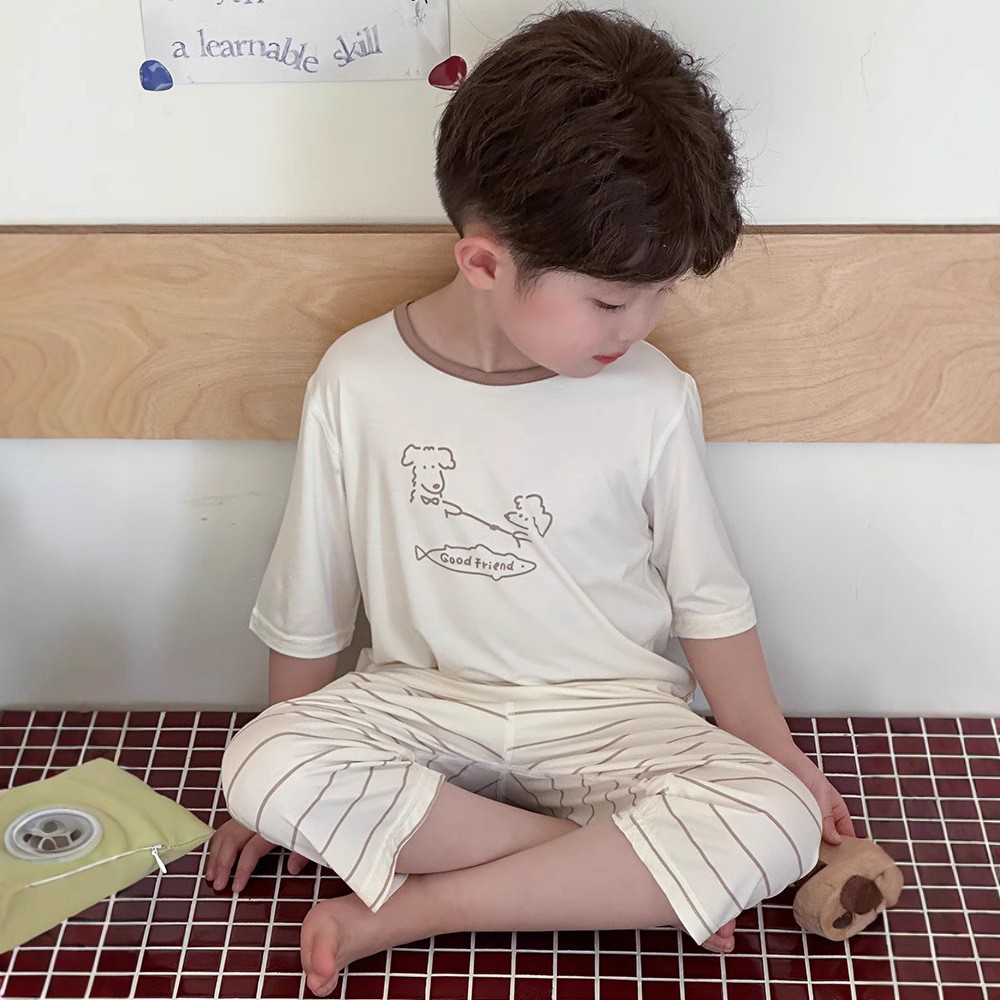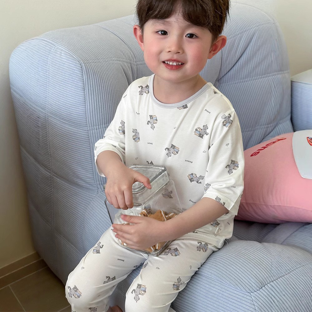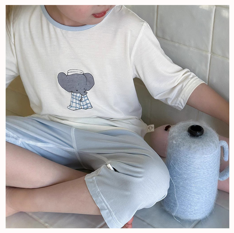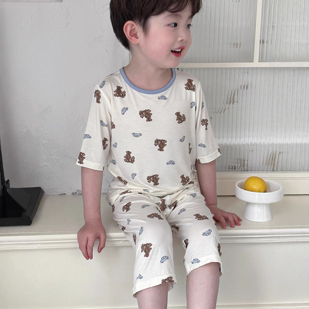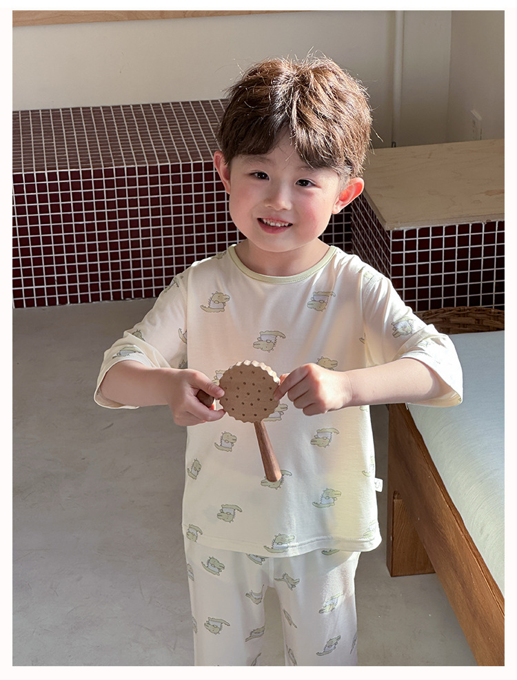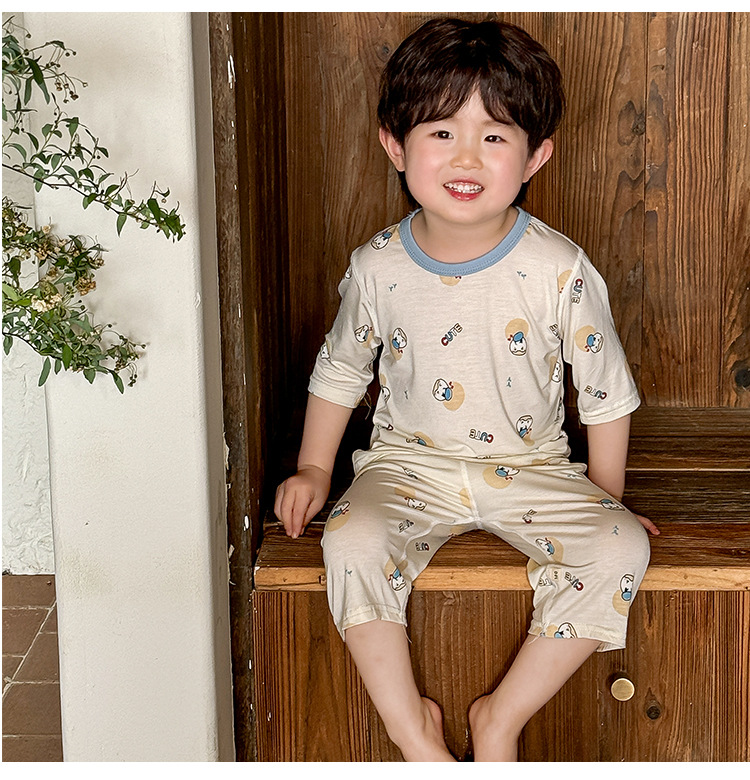 남아용 잠옷 2026년 신상 여름 얇은 7부 소매 세트 유코스 무봉제 홈웨어 어린이 에어컨복스토어 가기