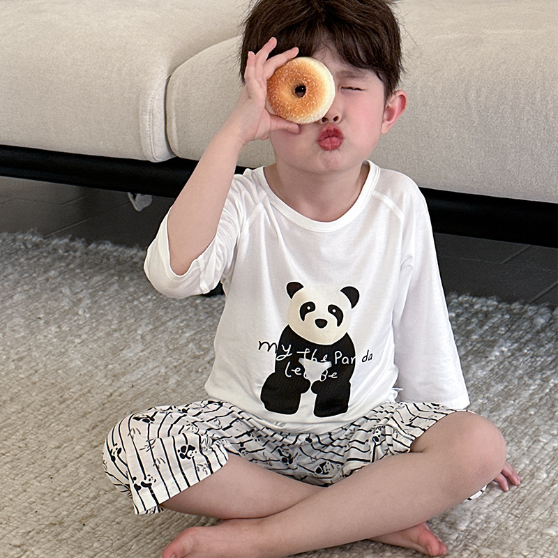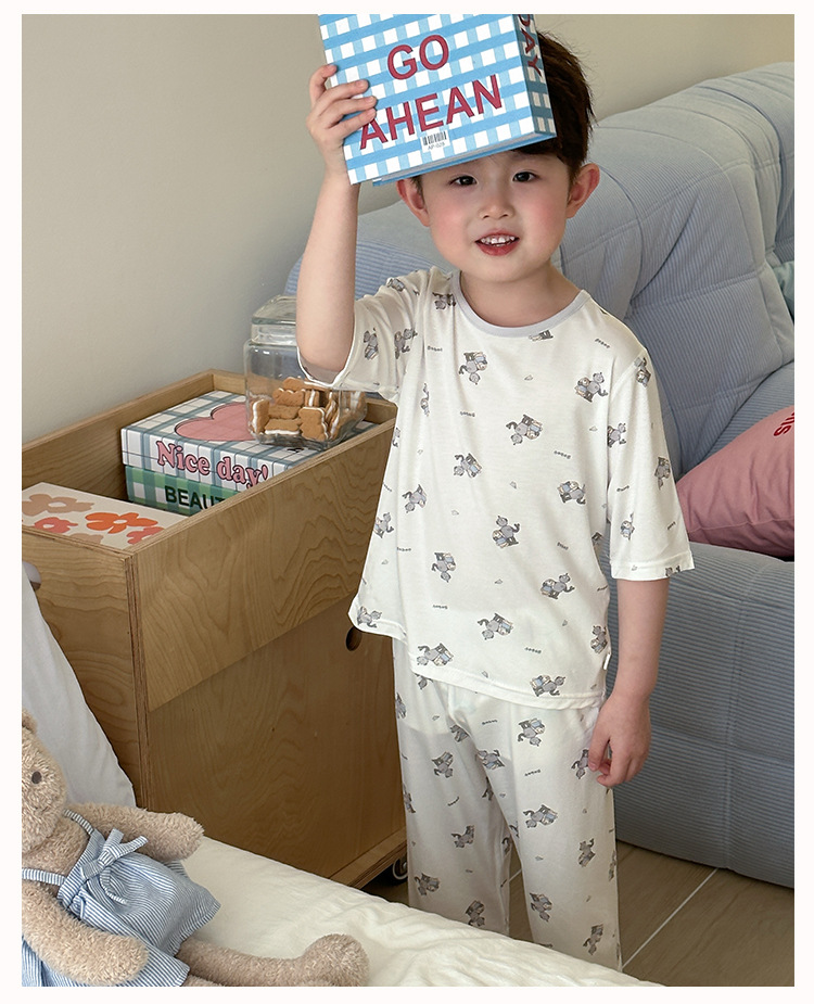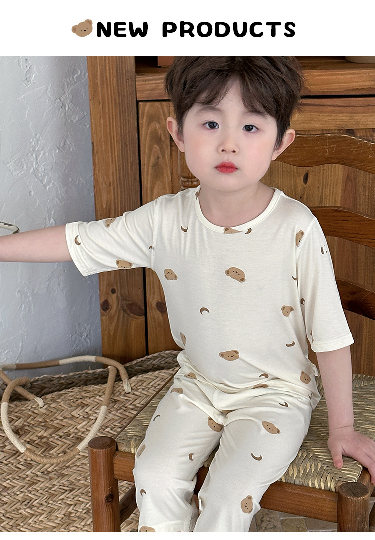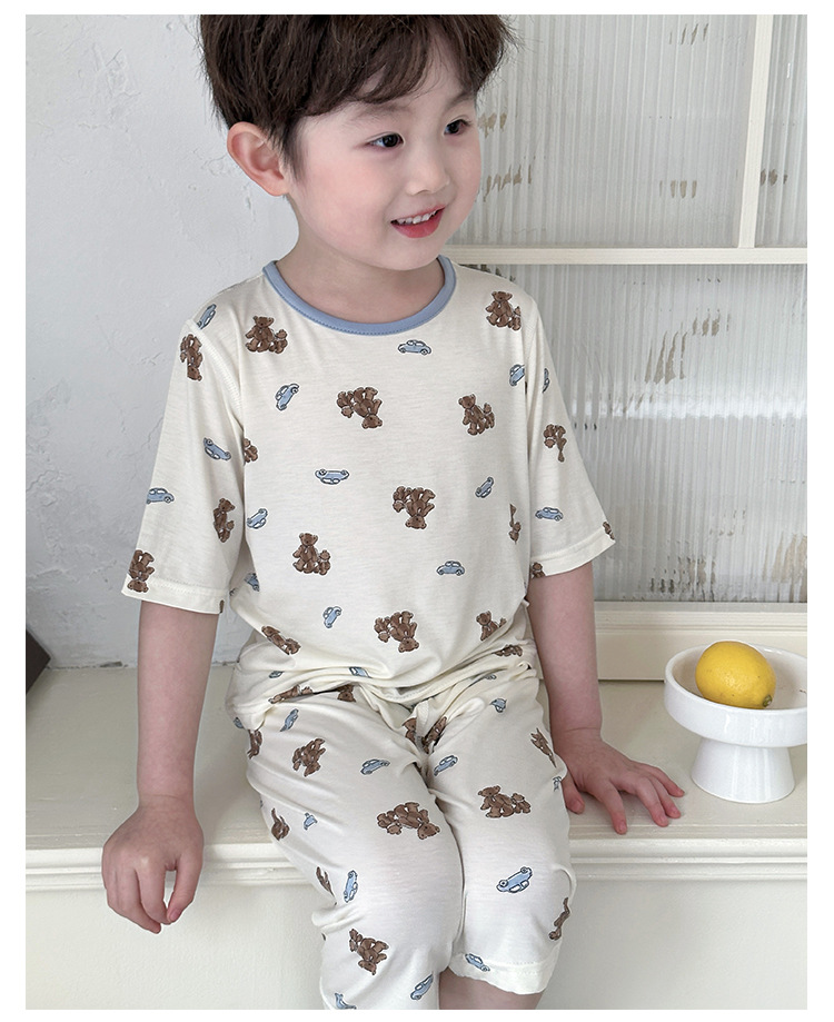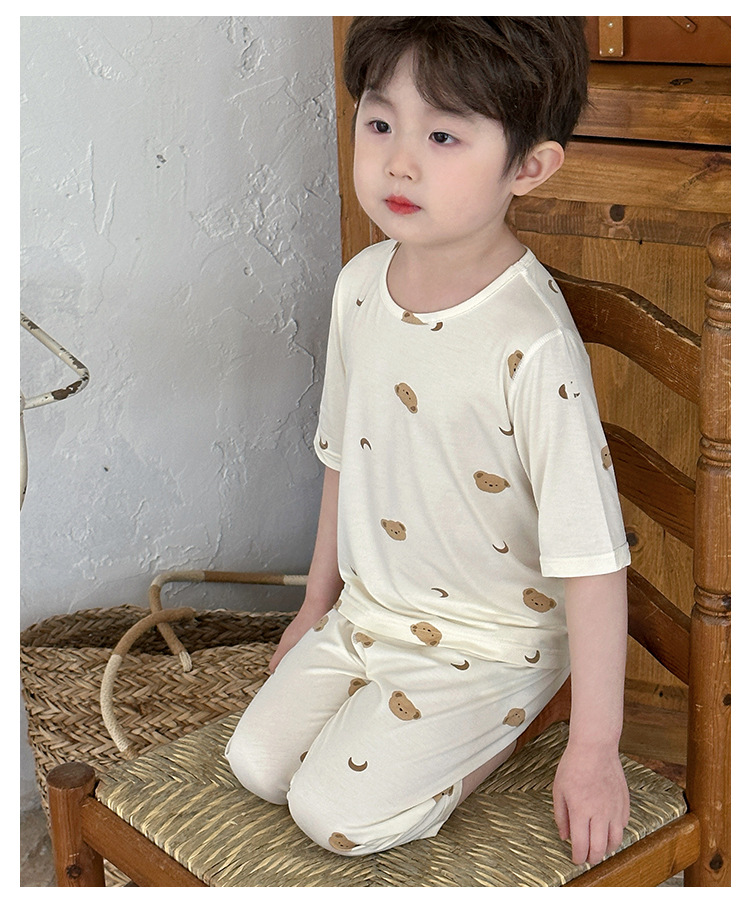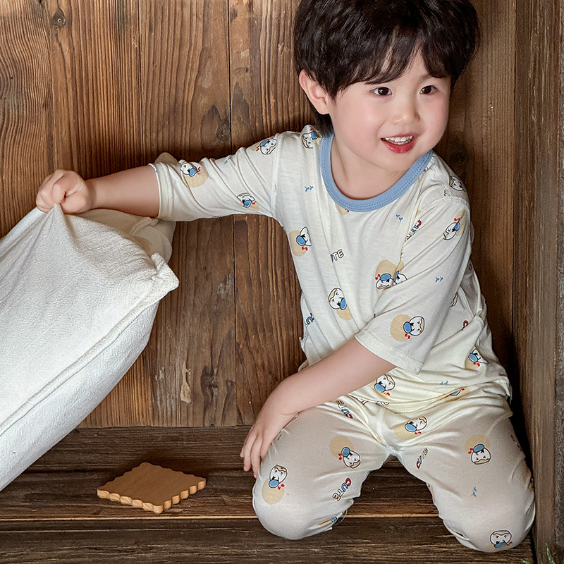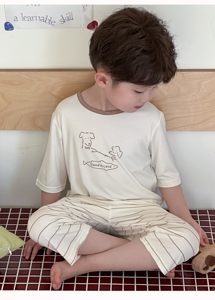 남아용 잠옷 2026년 신상 여름 얇은 7부 소매 세트 유코스 무봉제 홈웨어 어린이 에어컨복스토어 가기