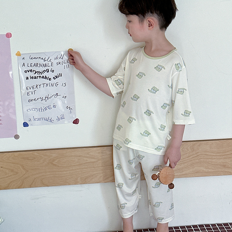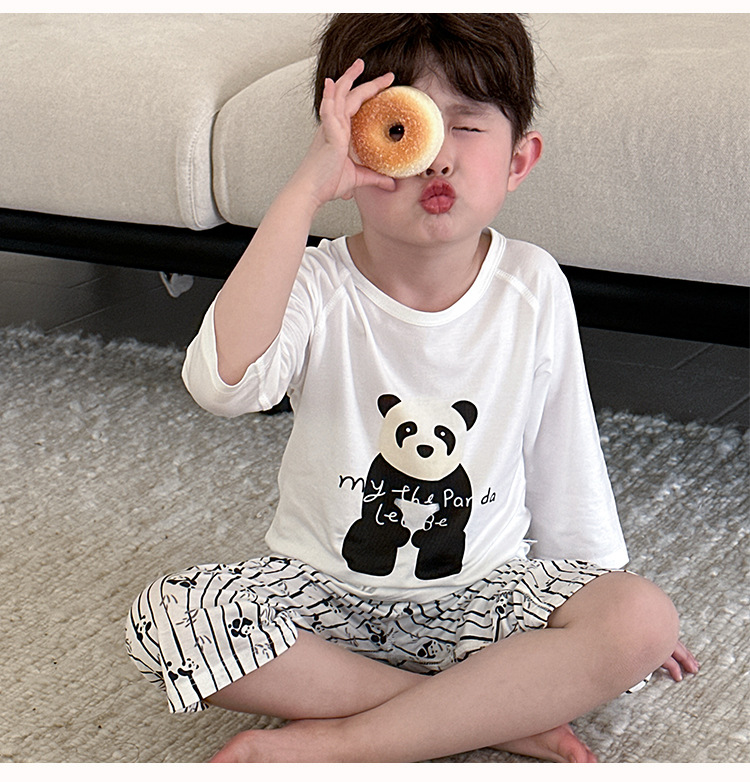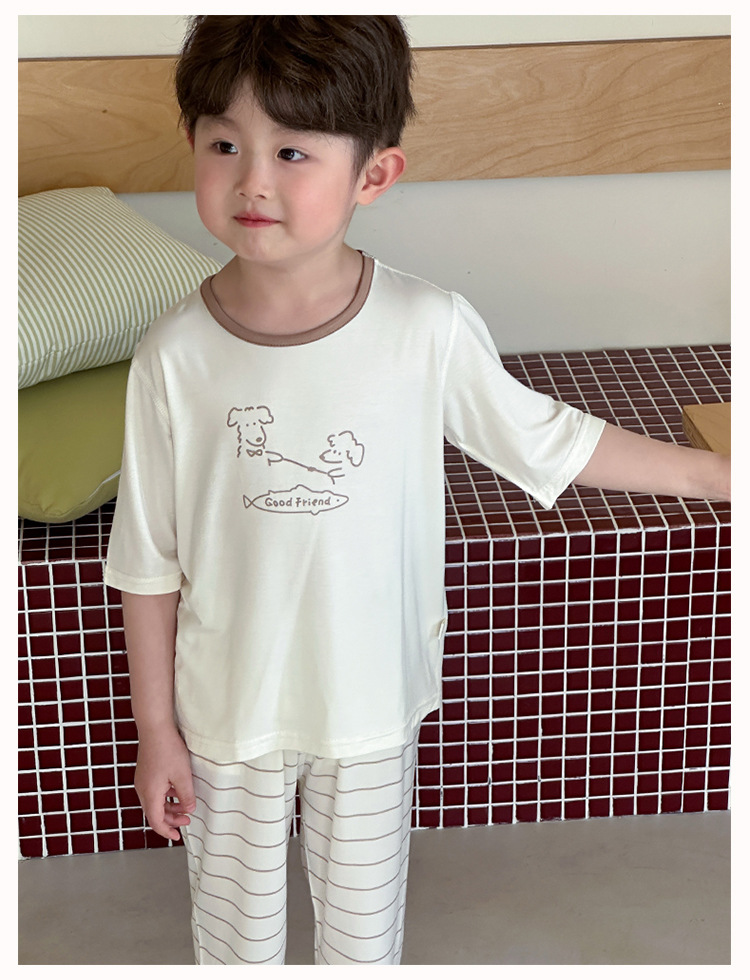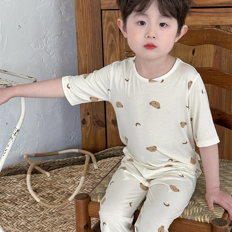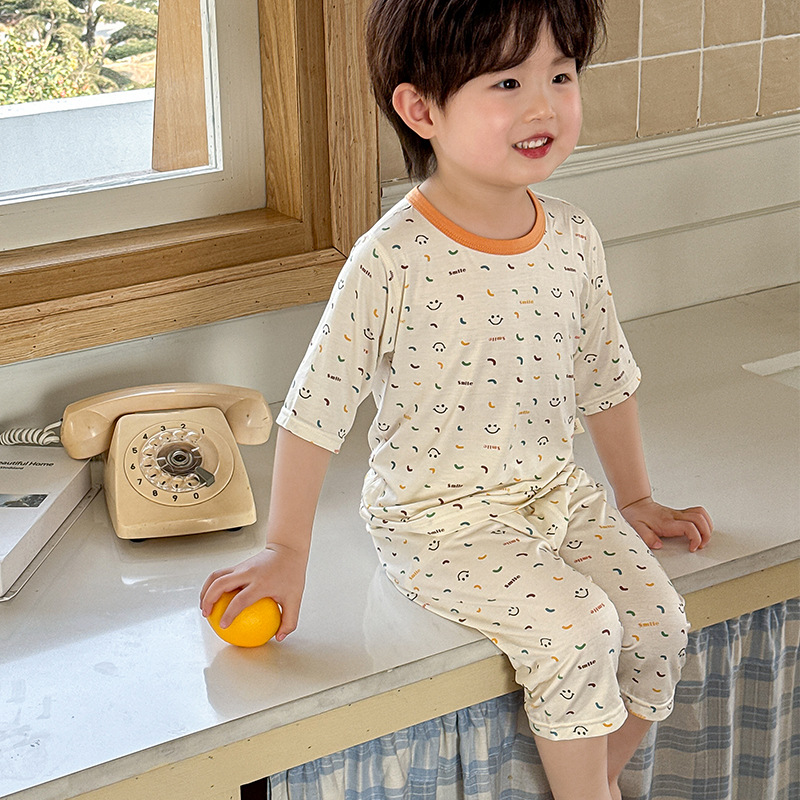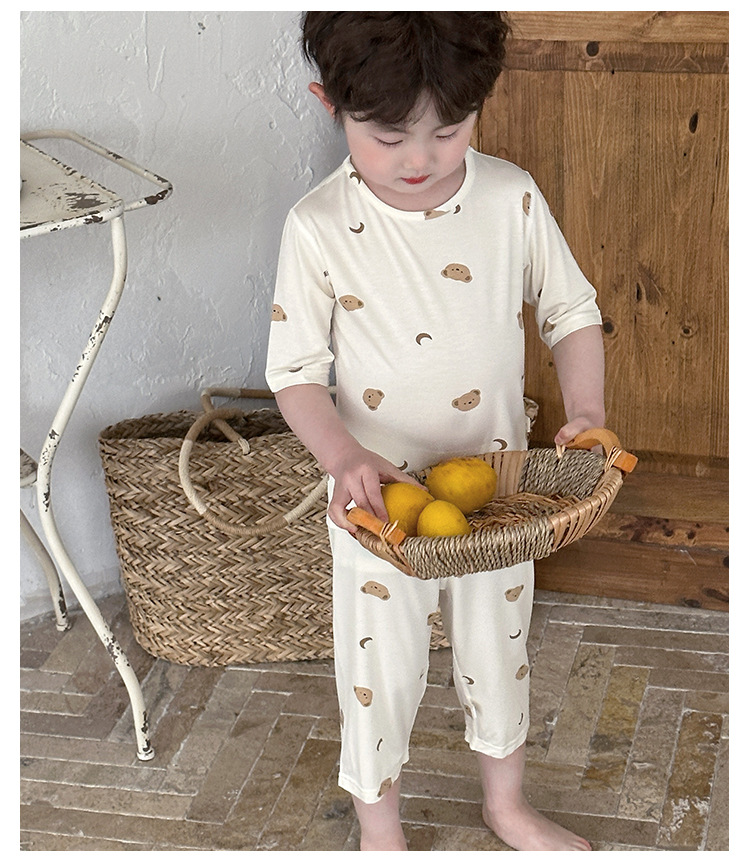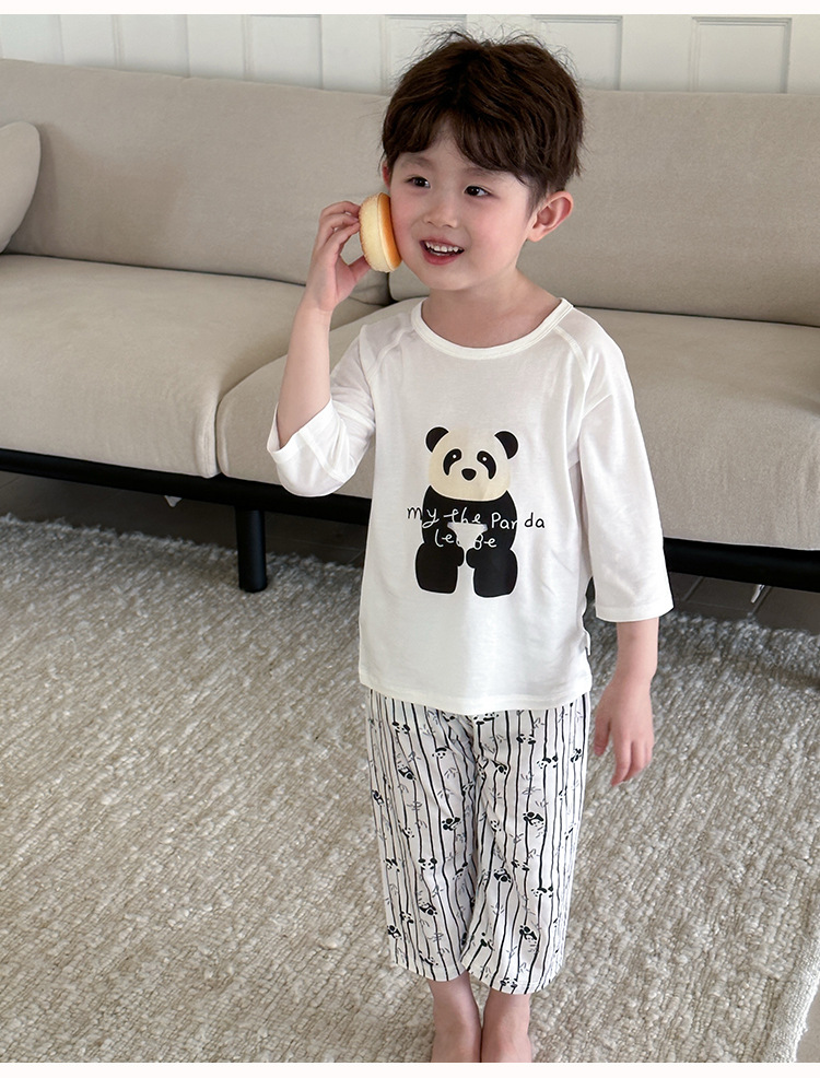 남아용 잠옷 2026년 신상 여름 얇은 7부 소매 세트 유코스 무봉제 홈웨어 어린이 에어컨복스토어 가기