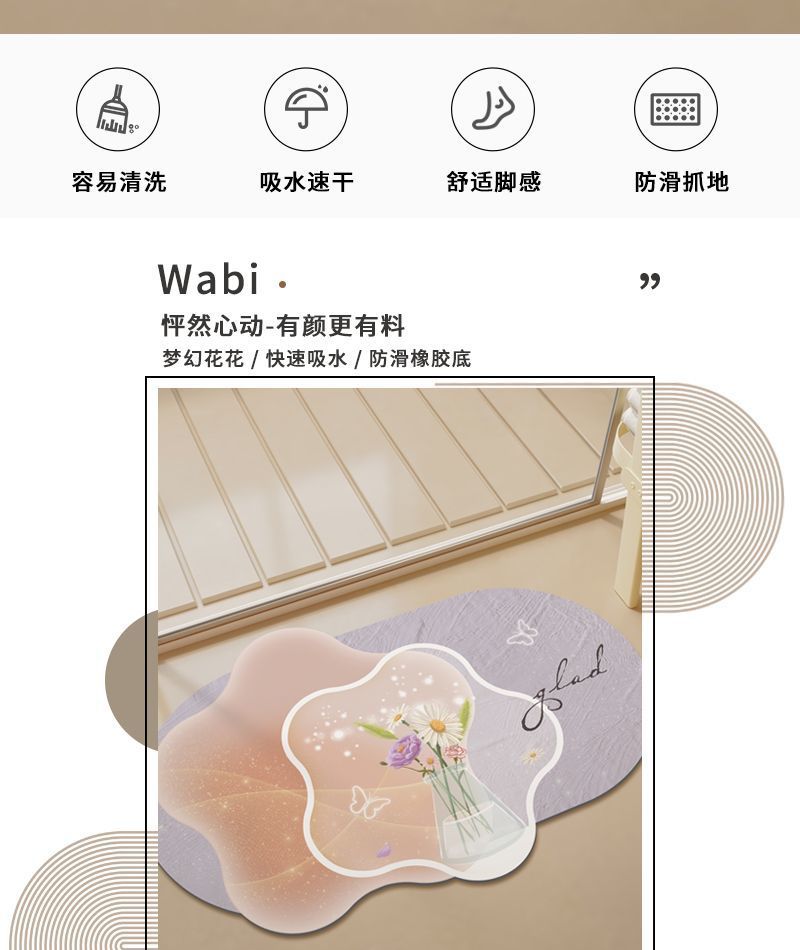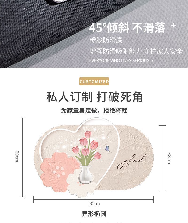 ∝[사슴가죽 소재] 욕실 속건성 미끄럼 방지 바닥 매트 욕실 고무 바닥 매트 규조토 진흙 흡수성 LS