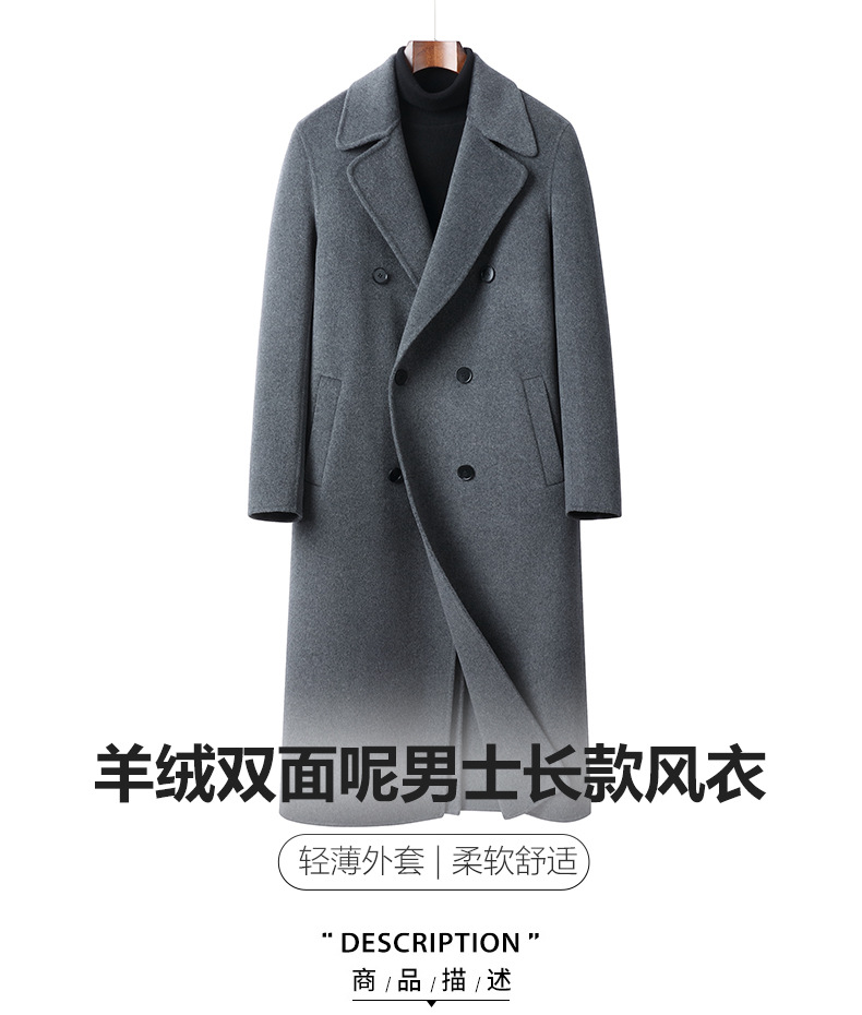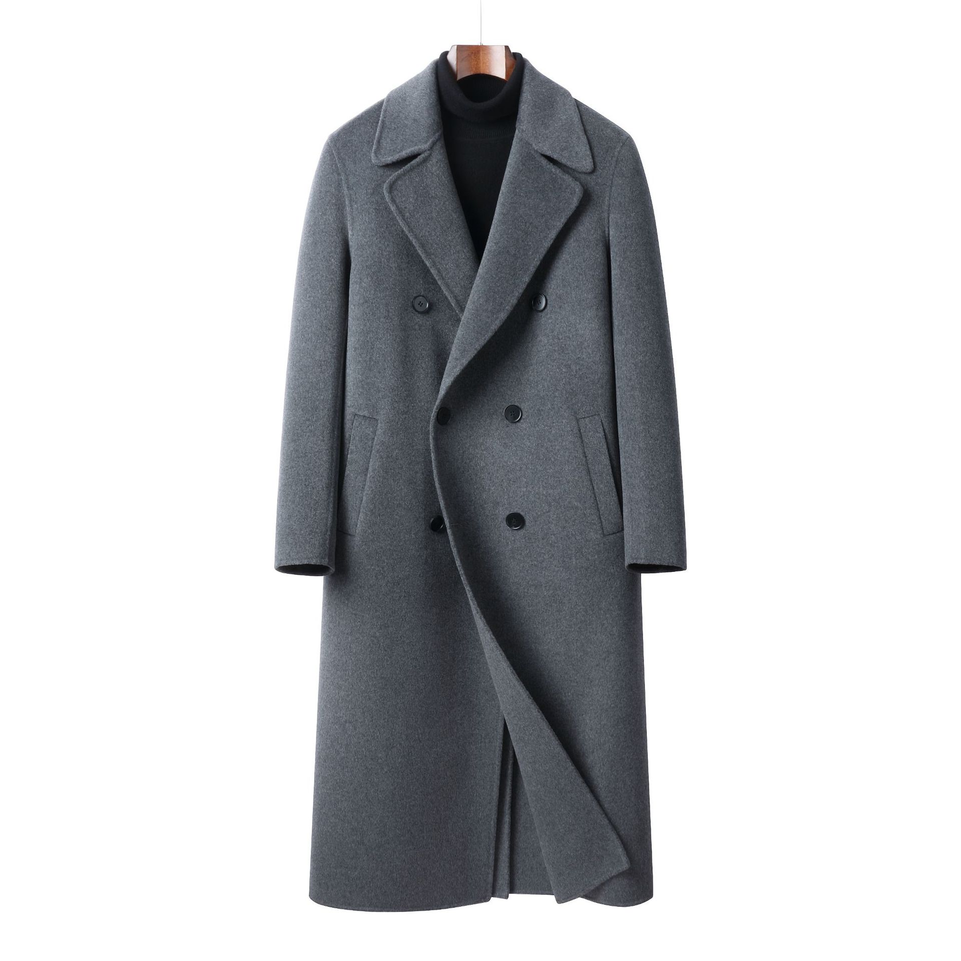 양면 캐시미어 코트 남성용 롱 기장 무릎 아래 이중 버튼 모직 코트 키 큰 사람용 롱 울 2025 신상스토어 가기