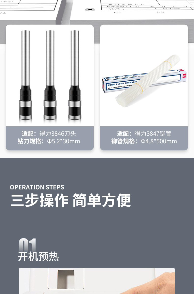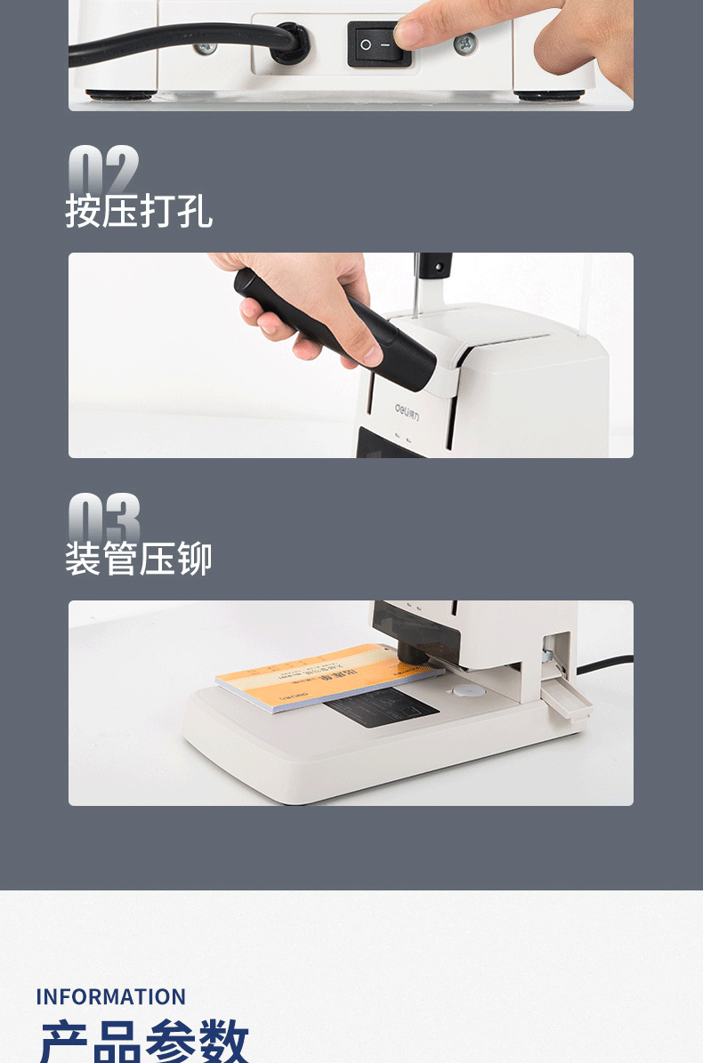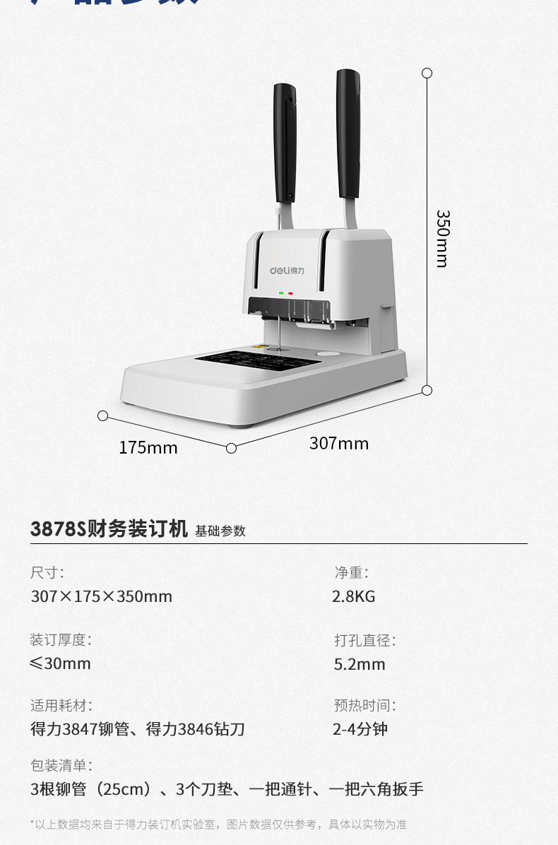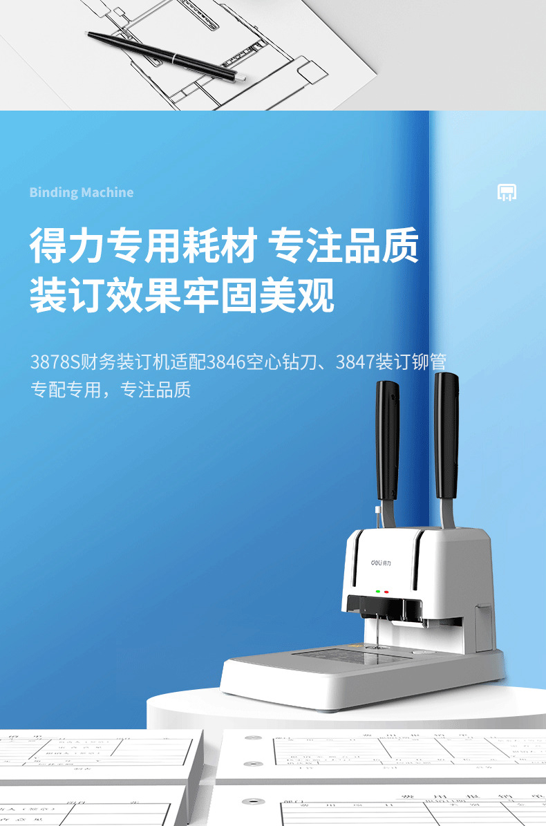 델리 3878s 재무 제본기 회계 영수증 파일링 사무실 소형 데이터 영수증 전기 천공기스토어 가기