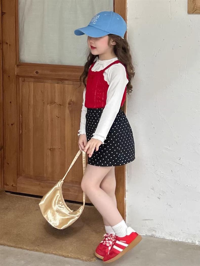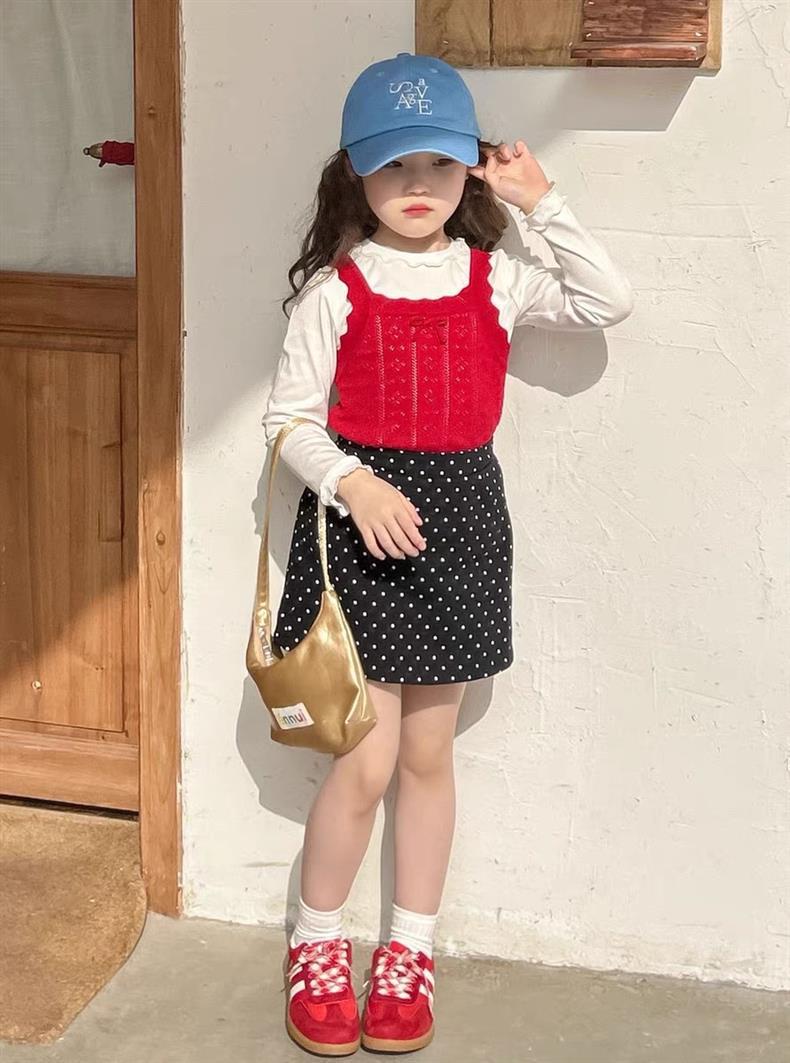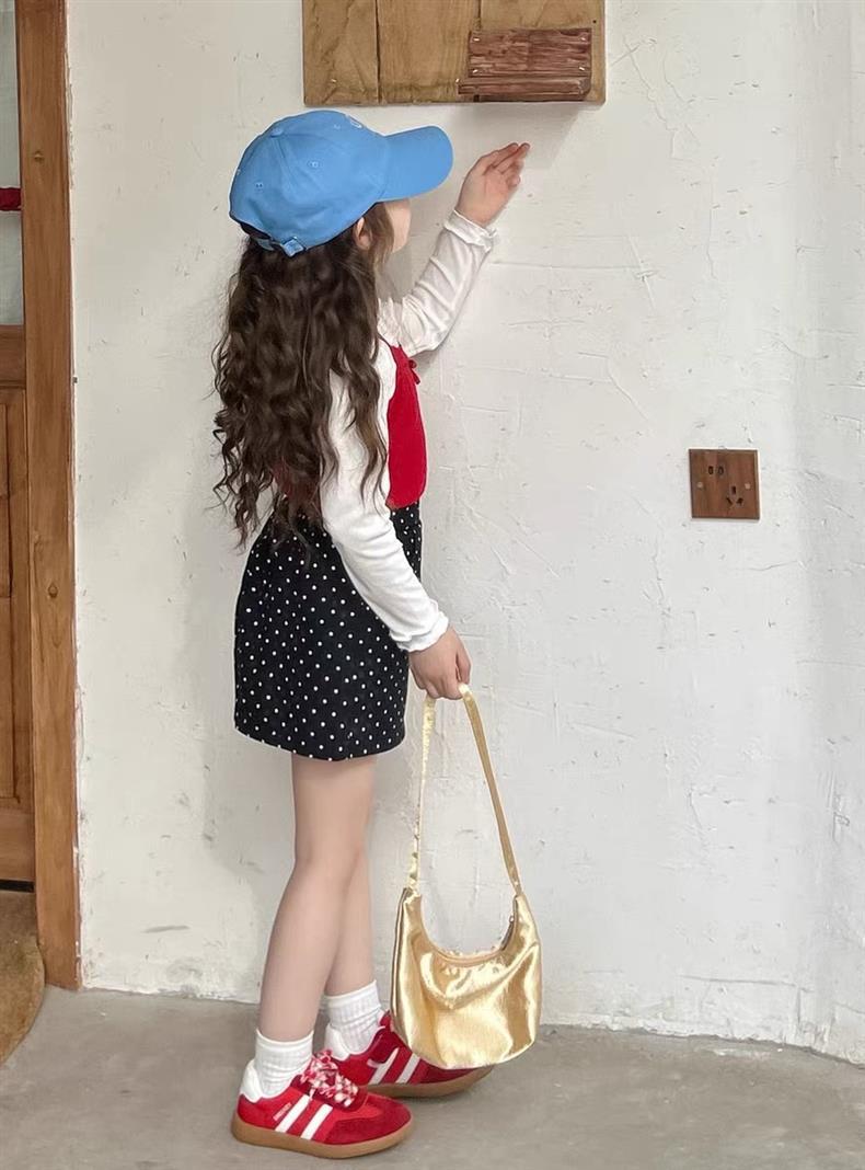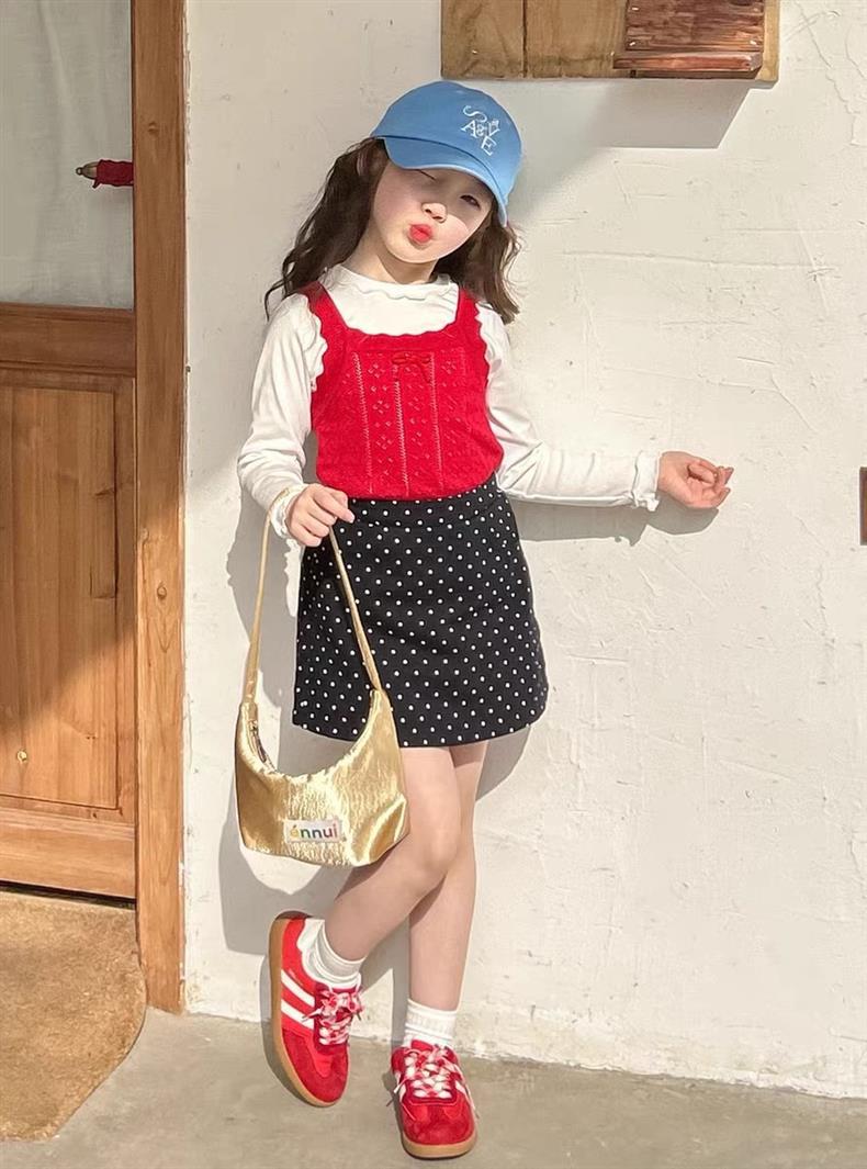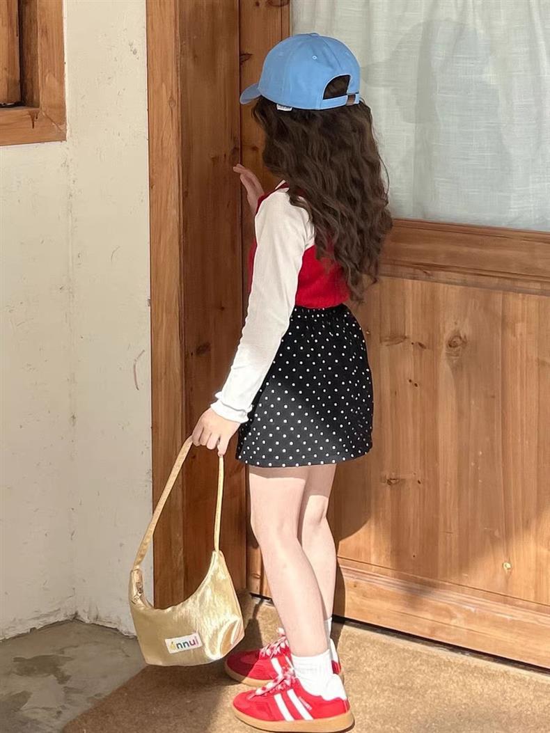 소녀의 달콤한 웨이브 도트 스커트 2025 새 여름 어린 소녀의 한국 A 라인 스커트 짧은 스커트 안티 라이트스토어 가기