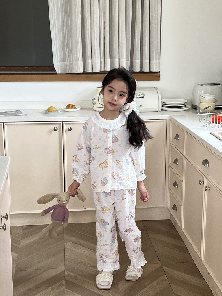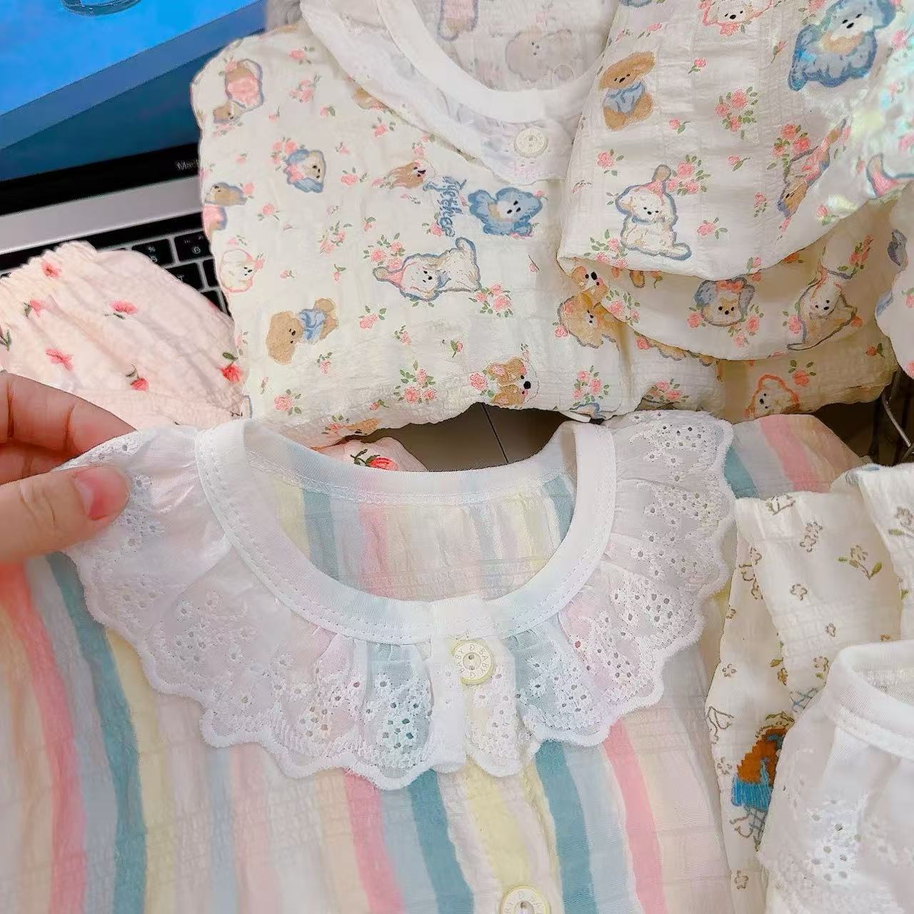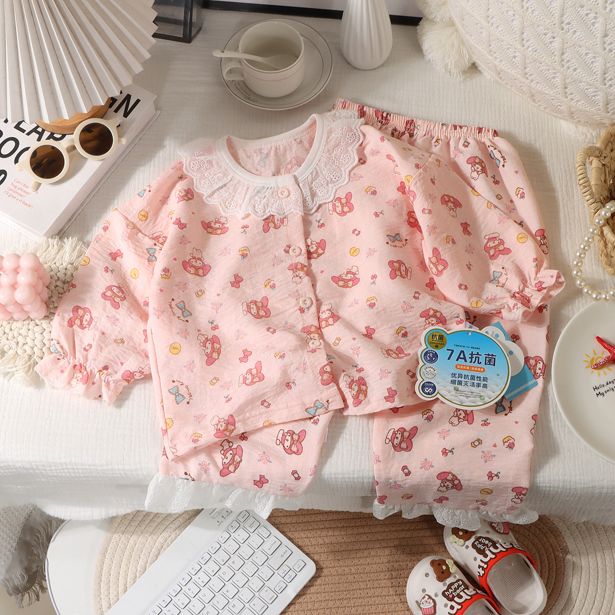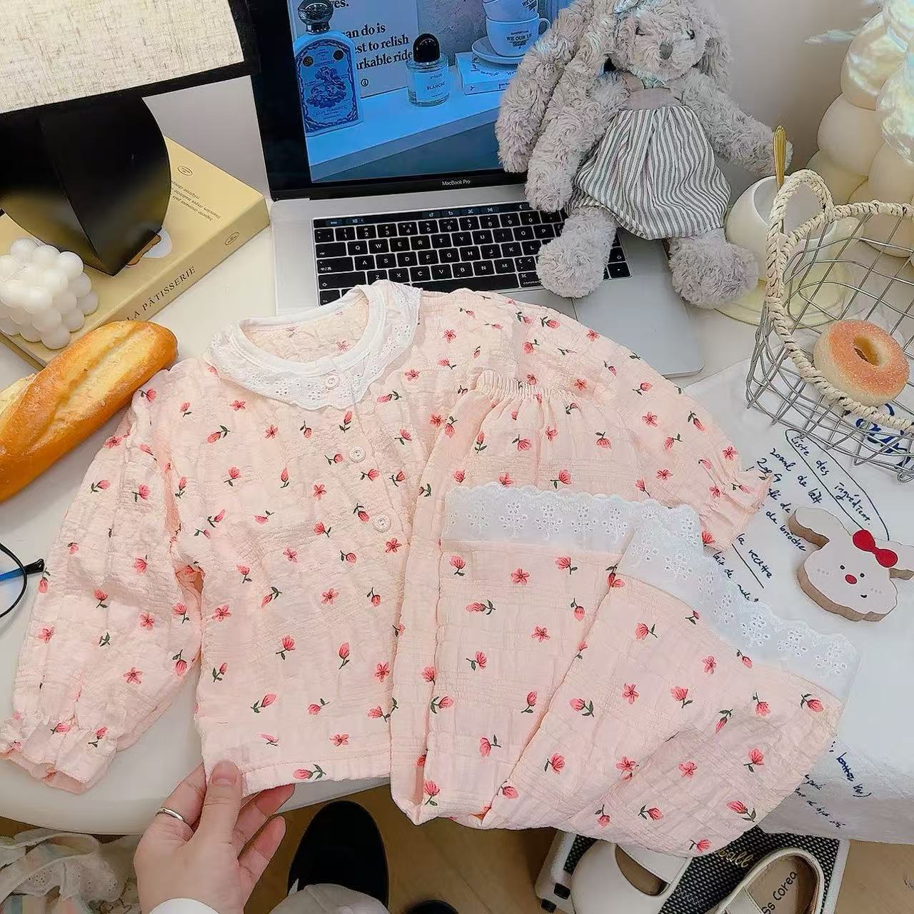 어린이 시간면 세트 어린이 잠옷 봄 소녀 달콤한 귀여운 레이스 공주 스타일 홈 옷스토어 가기