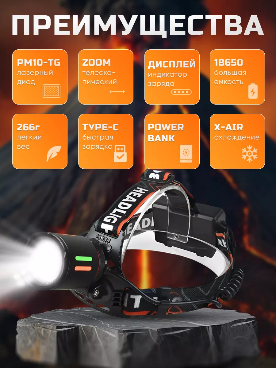 • 단일 헤드램프 + 충전 케이블(배터리는 포함되어 있지 않음)