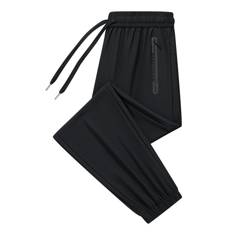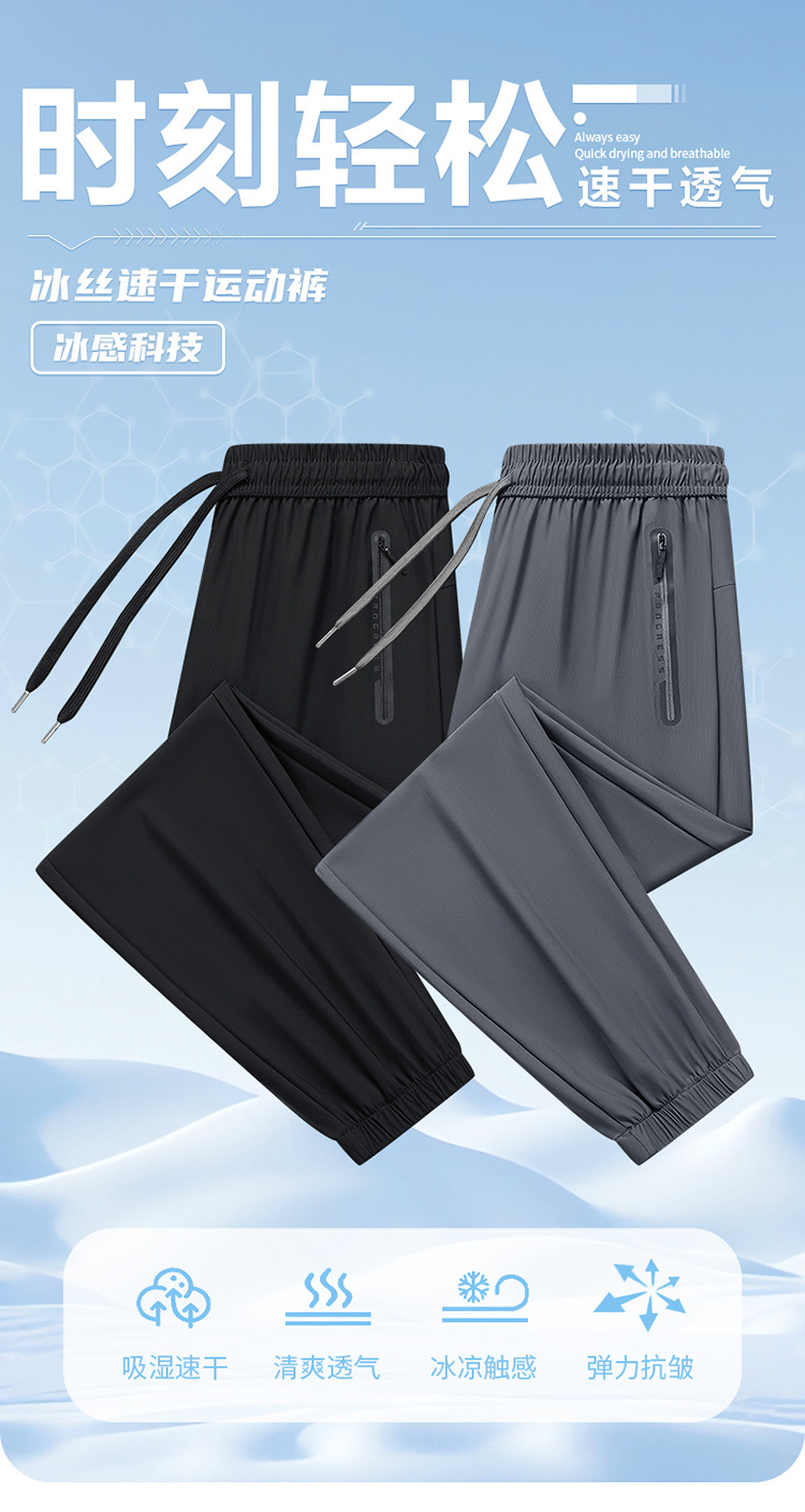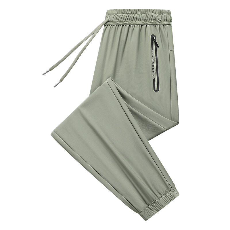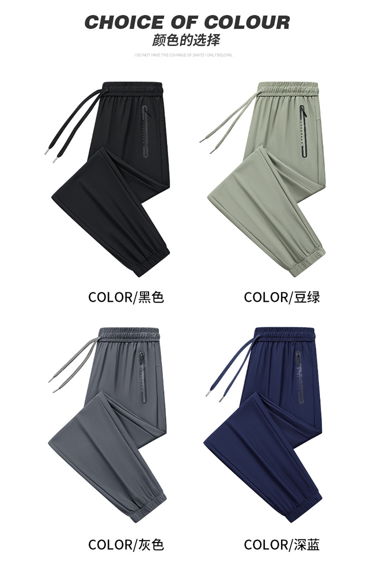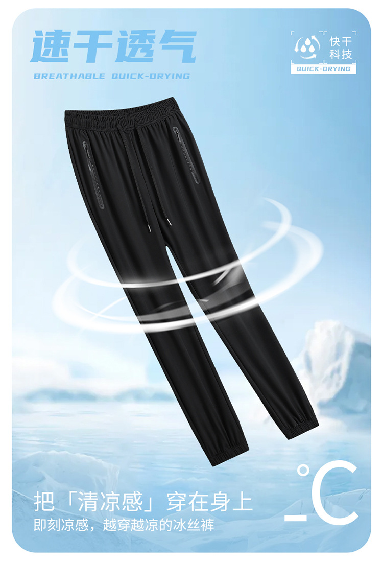 새로운 국경 얼음 실크 바지 남자 여름 유행 얇은 빠른 건조 통기성 느슨한 발목 바지 유행 올 매치 바지