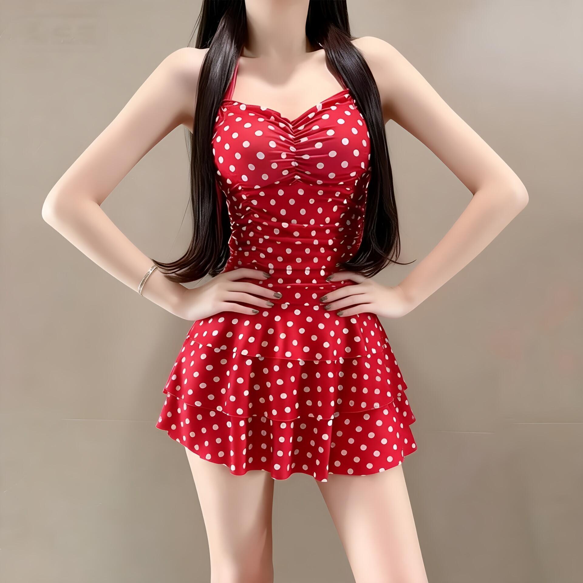 한국 인 스타일 빈티지 클래식 웨이브 담낭 케이크 스커트 슬림 핏 슬리밍 사이즈 가슴 원피스 수영복 여성용 수영복스토어 가기