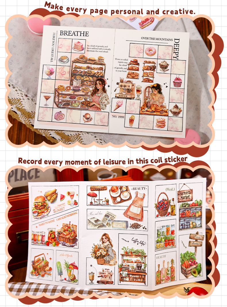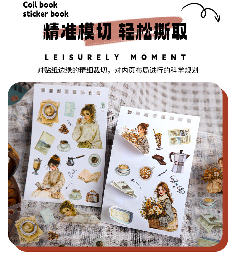 케첩 코일 더블 소재 스티커 책 여유로운 순간 시리즈 복고풍 조경 소재 손 계정 장식 콜라주스토어 가기