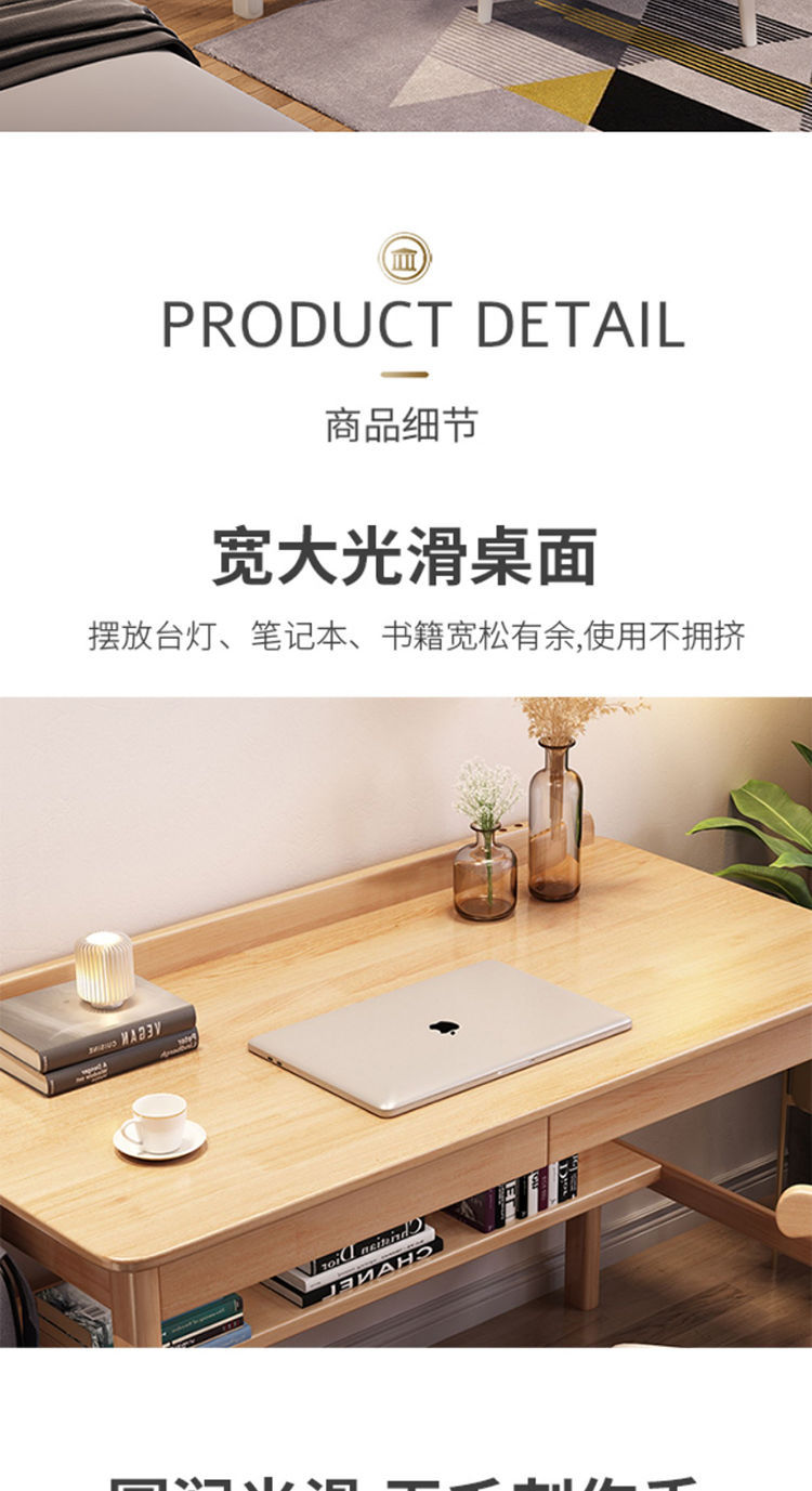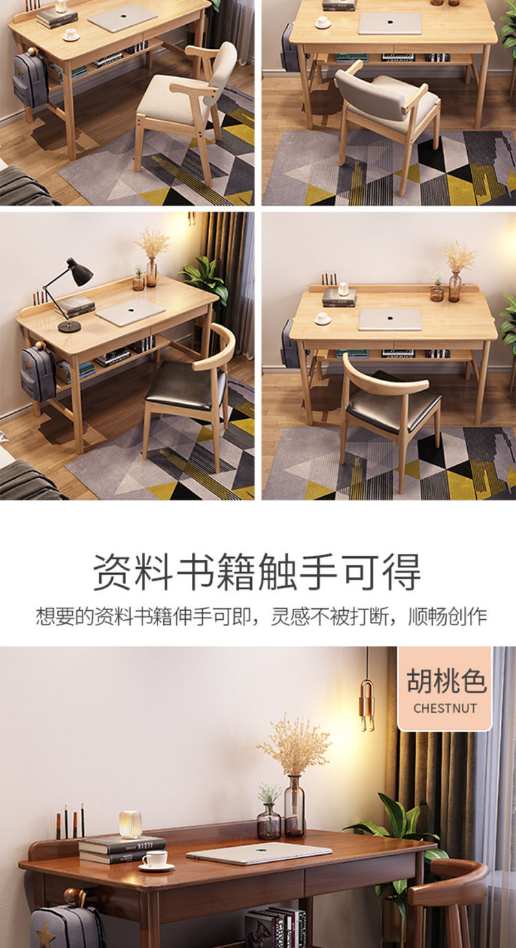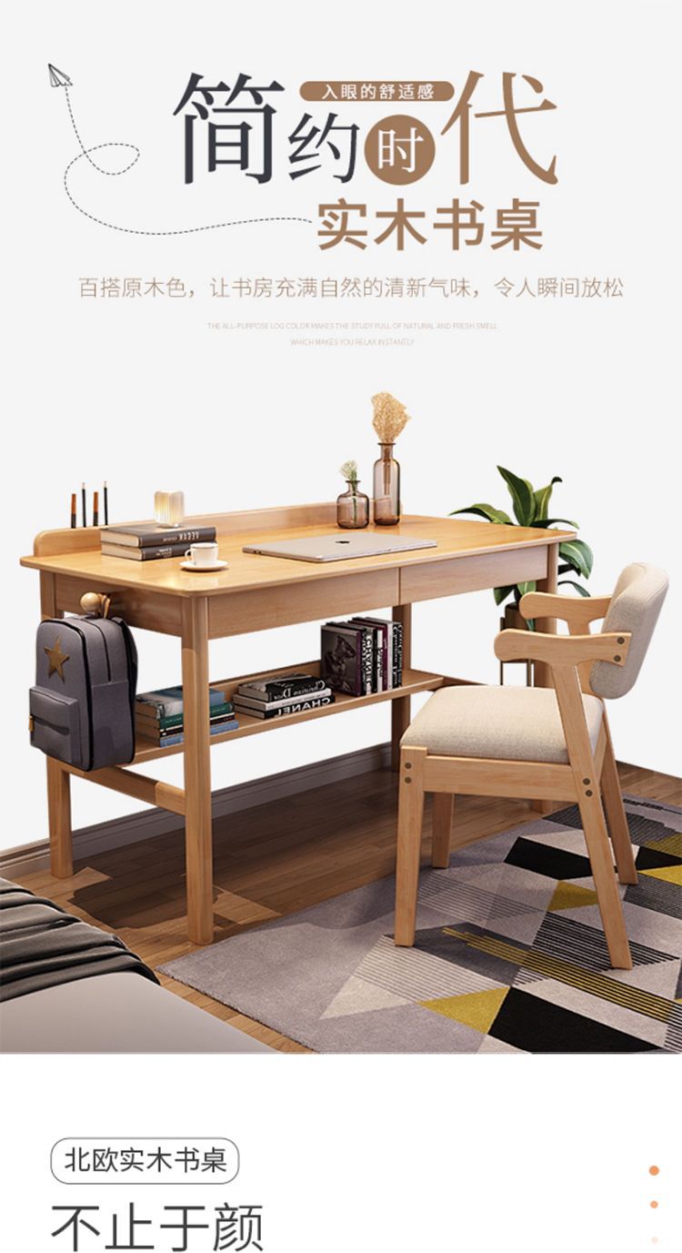 초등 및 중등 학교 학생을위한 Nordic Ins 스타일 솔리드 우드 데스크 간단한 가정 학습 책상 침실 데스크톱 컴퓨터 테이블스토어 가기