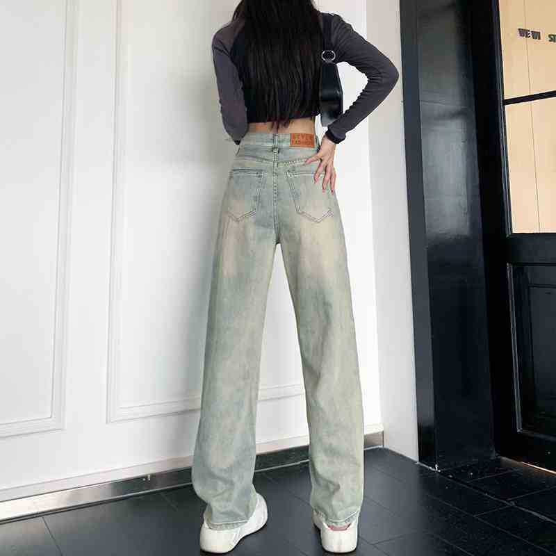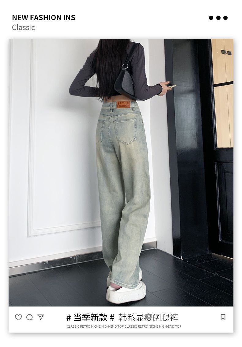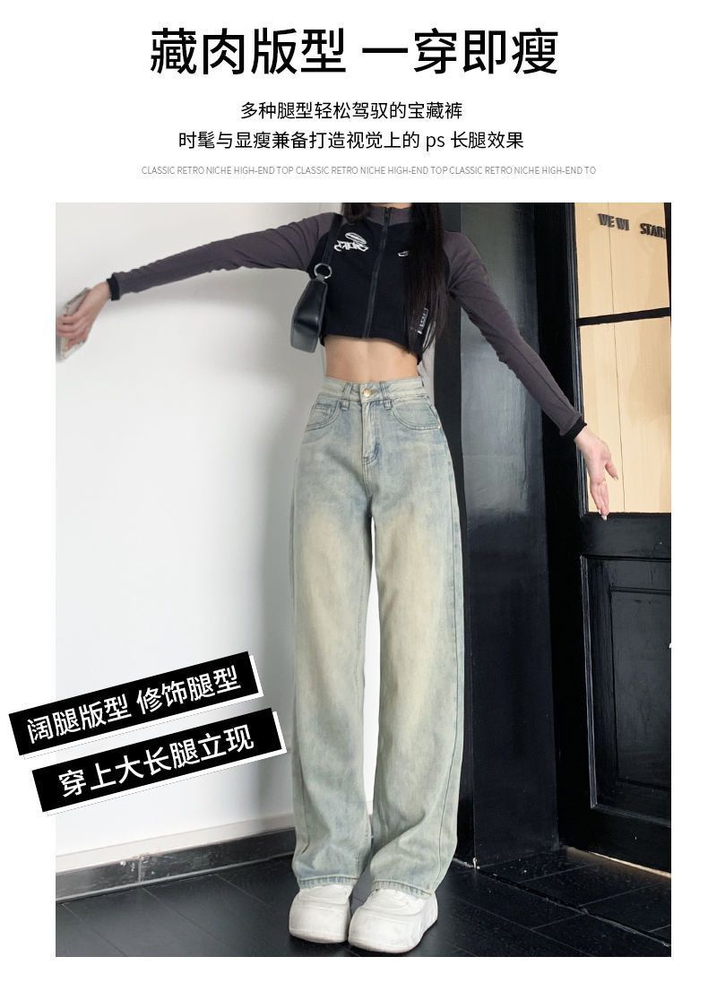 높은 허리 넓은 다리 청바지 여성의 봄과 가을 2025 새로운 느슨한 슬림 피팅 바지 스트레이트 긴 바지스토어 가기