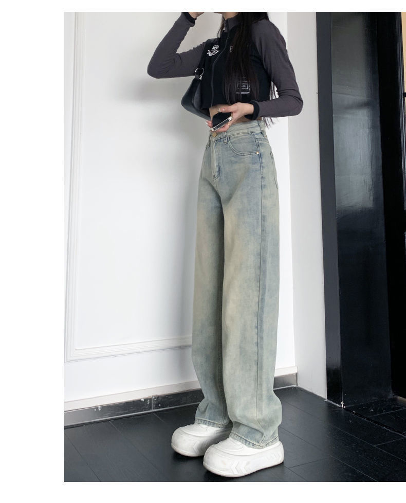 높은 허리 넓은 다리 청바지 여성의 봄과 가을 2025 새로운 느슨한 슬림 피팅 바지 스트레이트 긴 바지