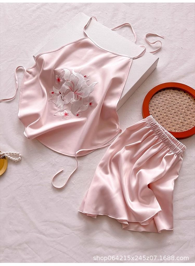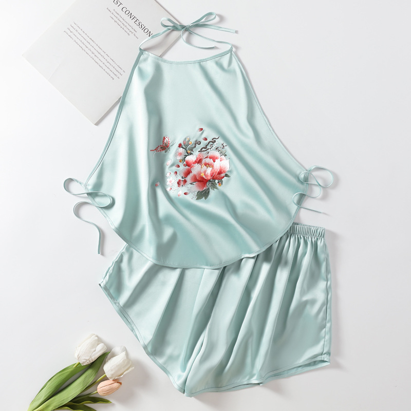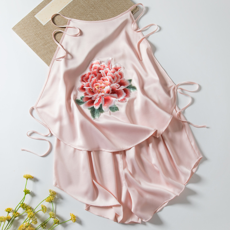 여성용 자수 배꼽 스카프, 성인용 더블 레이어 모조 실크 속옷, 자수 복고풍 스타일 잠옷, 서스펜더 섹시 슈트스토어 가기