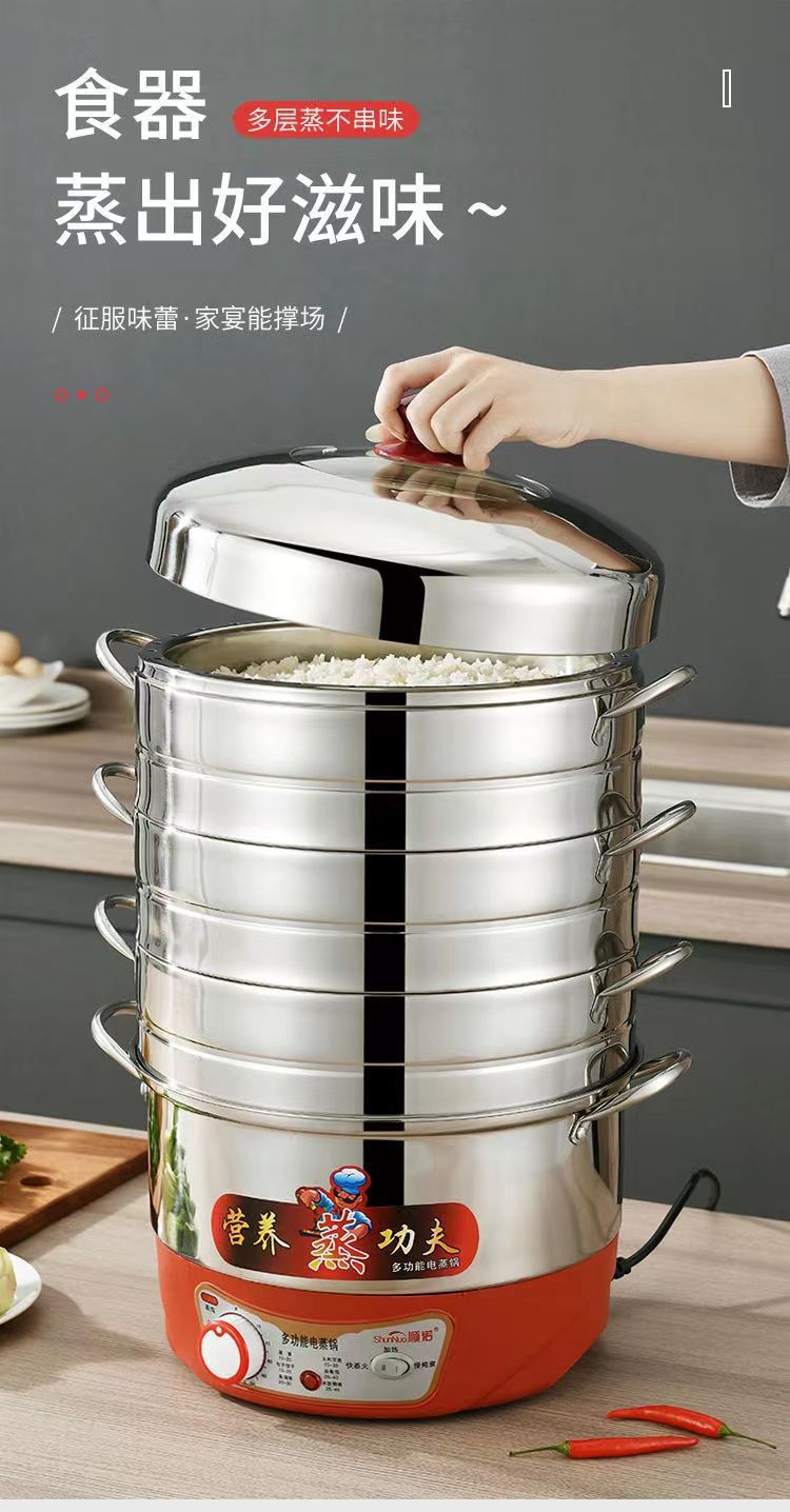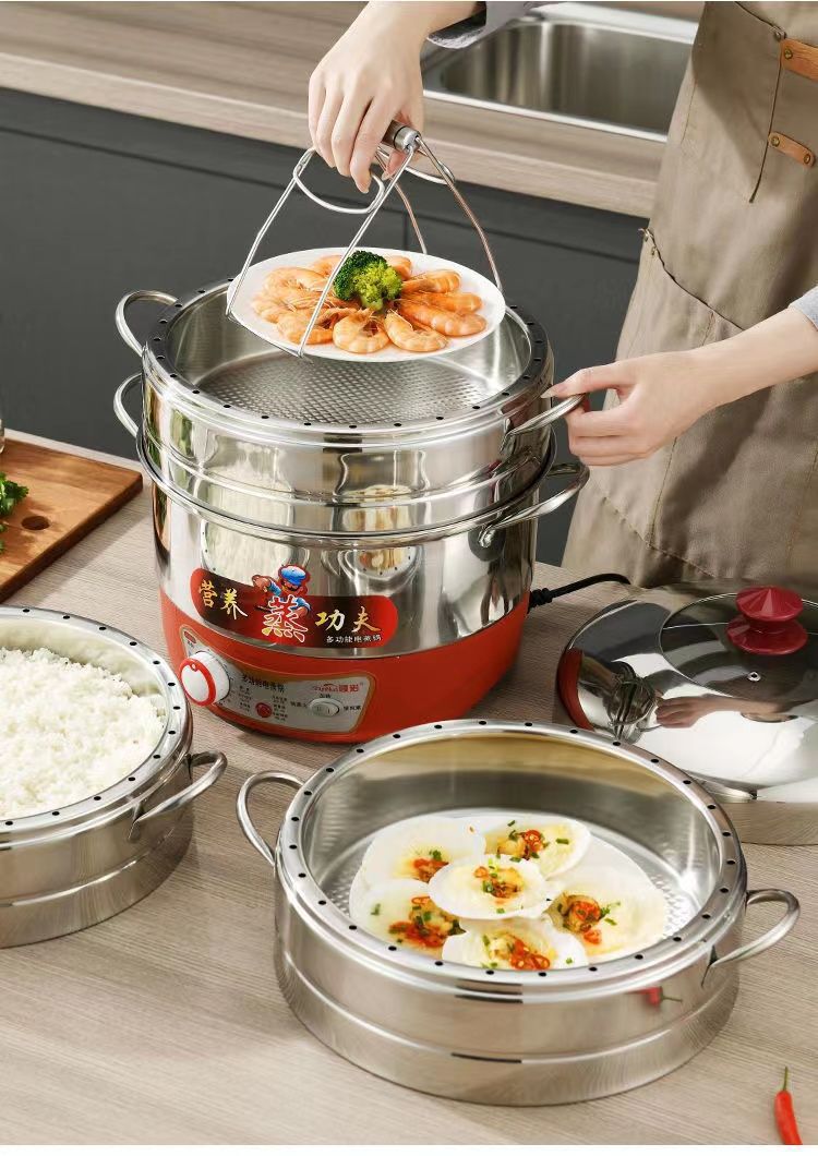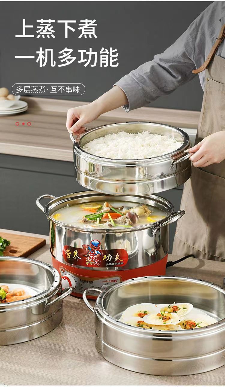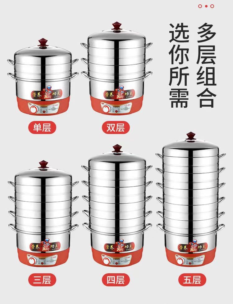 스테인레스 스틸 전기 찜통 가정용 3 층 밥솥 대용량 다기능 타이밍 건조 방지 자동 전원 끄기 찜통