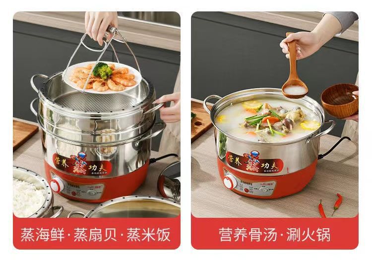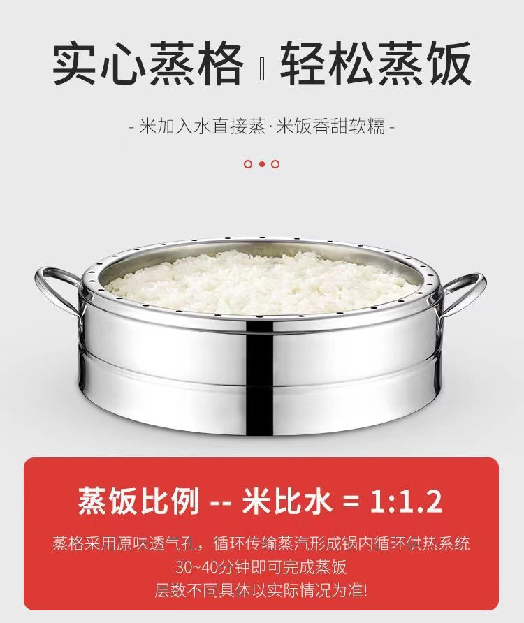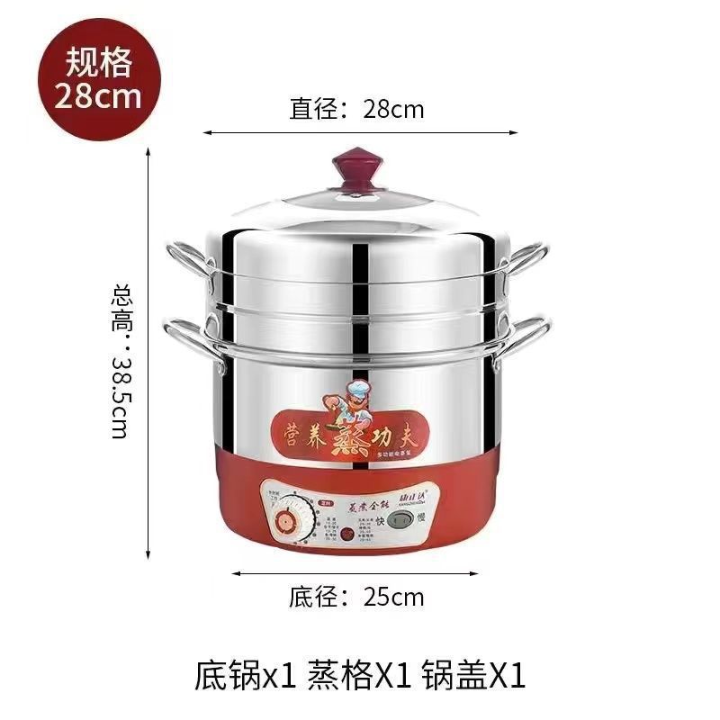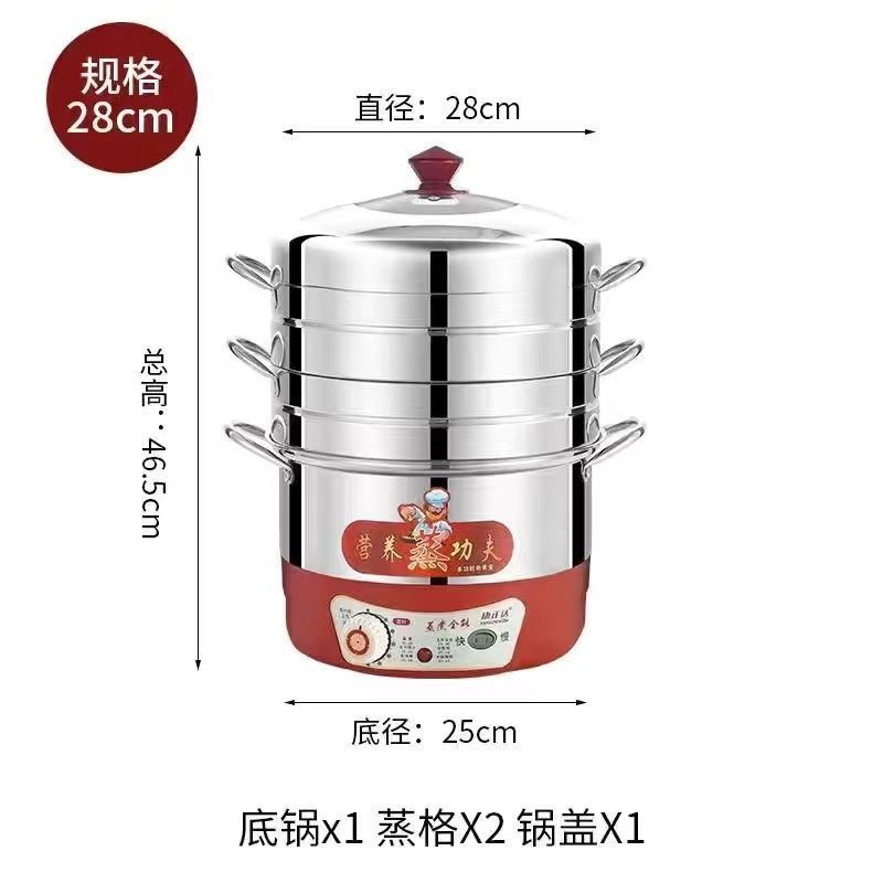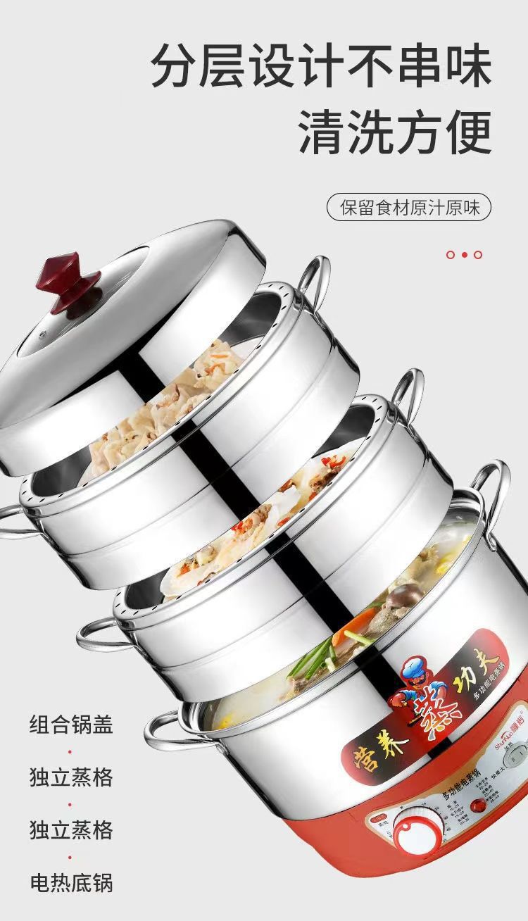 스테인레스 스틸 전기 찜통 가정용 3 층 밥솥 대용량 다기능 타이밍 건조 방지 자동 전원 끄기 찜통