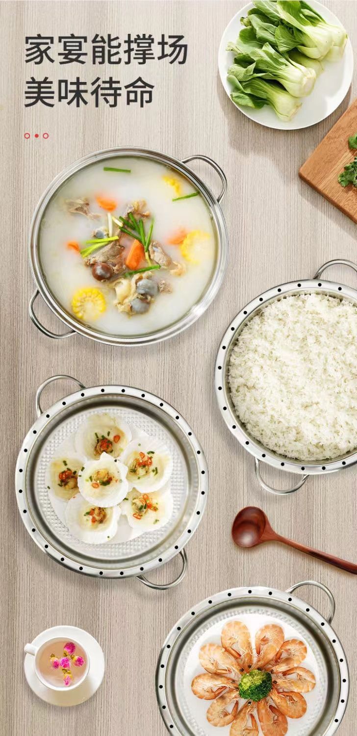 • 32cm 자동 전원 차단 찜기 - 단일 바닥 냄비 [바닥 냄비 + 뚜껑]
