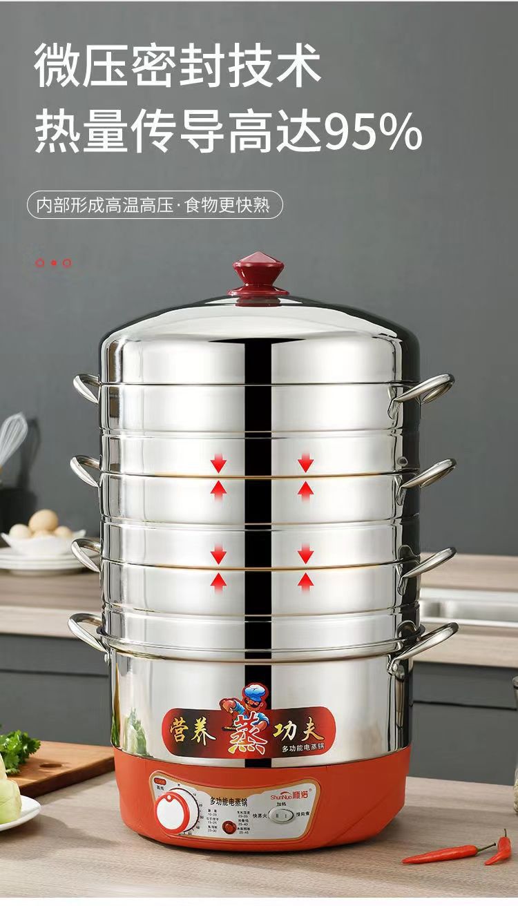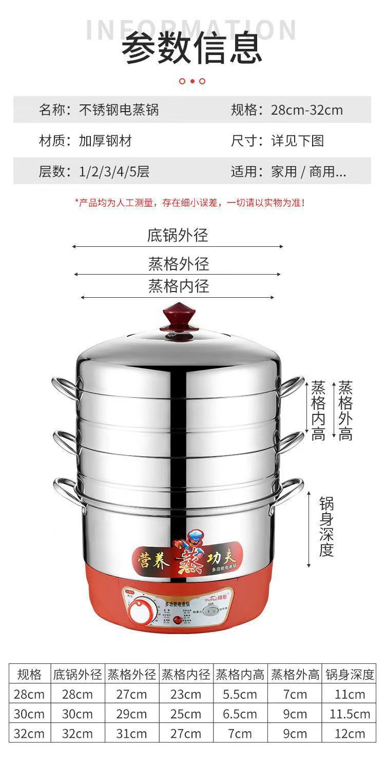 스테인레스 스틸 전기 찜통 가정용 3 층 밥솥 대용량 다기능 타이밍 건조 방지 자동 전원 끄기 찜통스토어 가기
