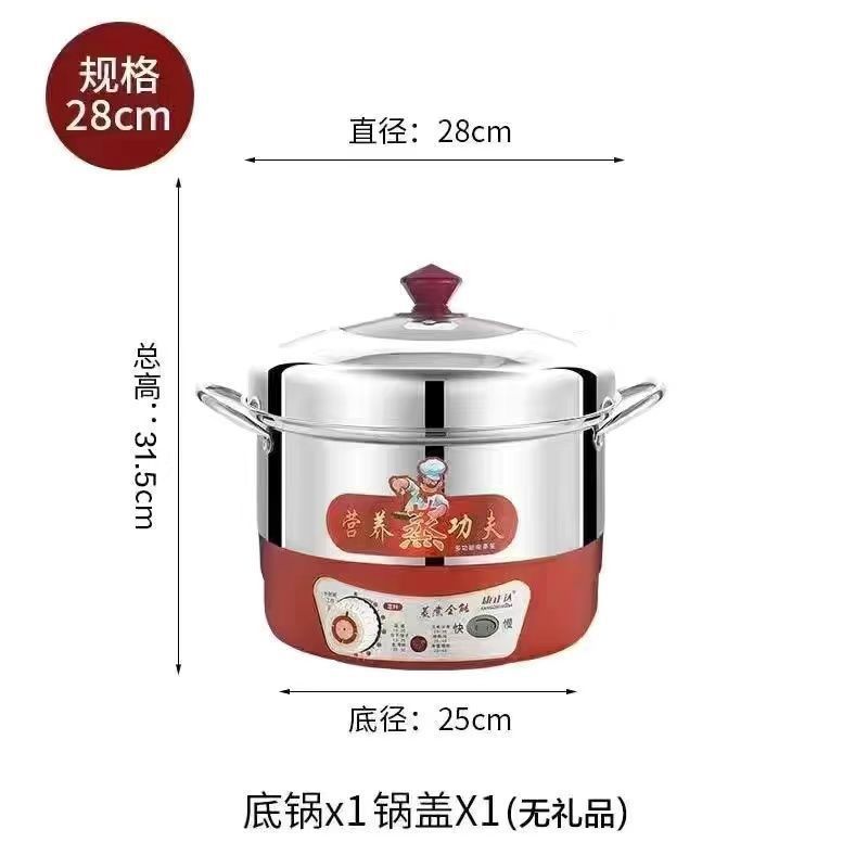 • 28cm 타이머 자동 전원 차단 찜기 - 단일 바닥 냄비 [바닥 냄비 + 뚜껑]
