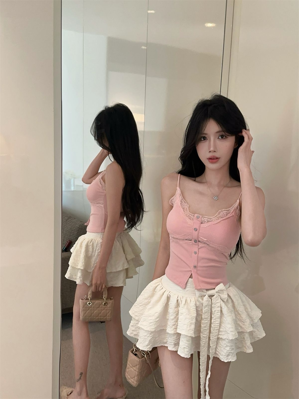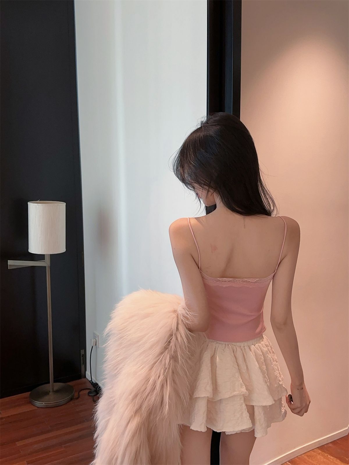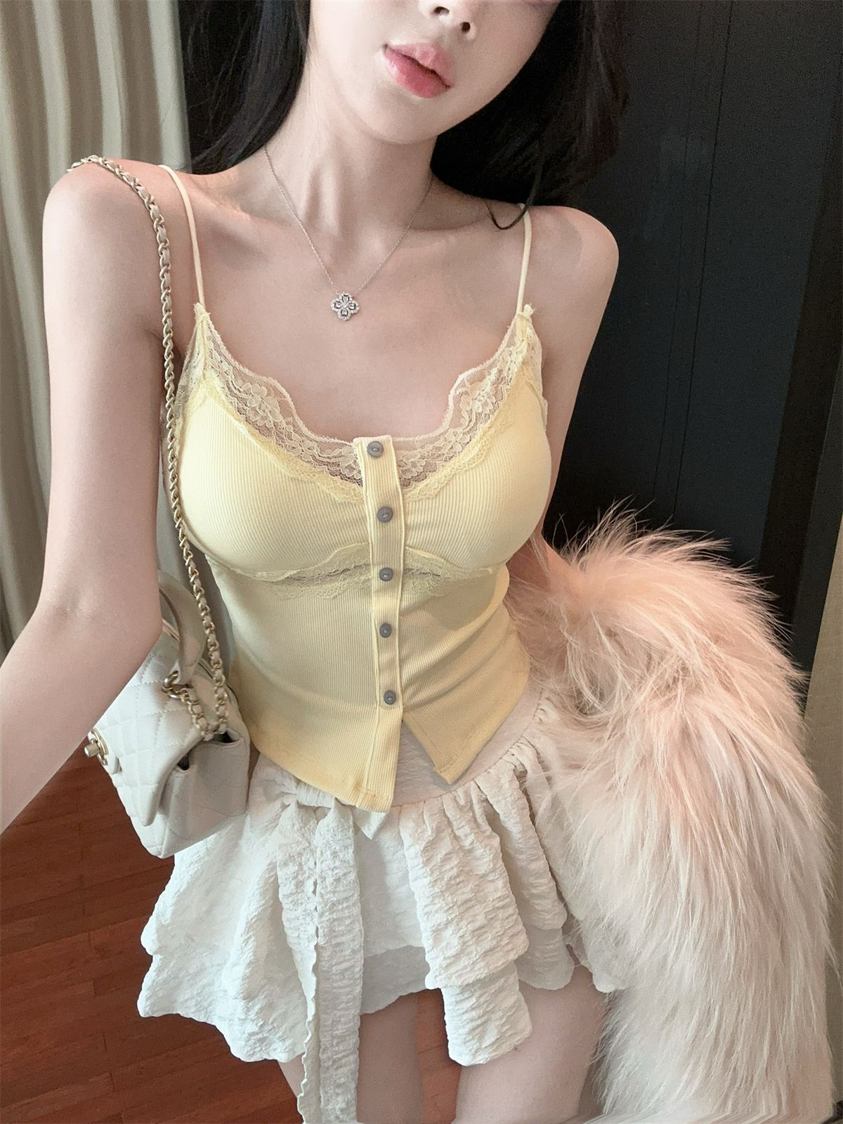 퓨어 스파이스 걸 레이스 V 넥 작은 카미솔 여성용 내복 뷰티 백 브래지어 원피스 베이스 탑 (가슴 패드 포함)