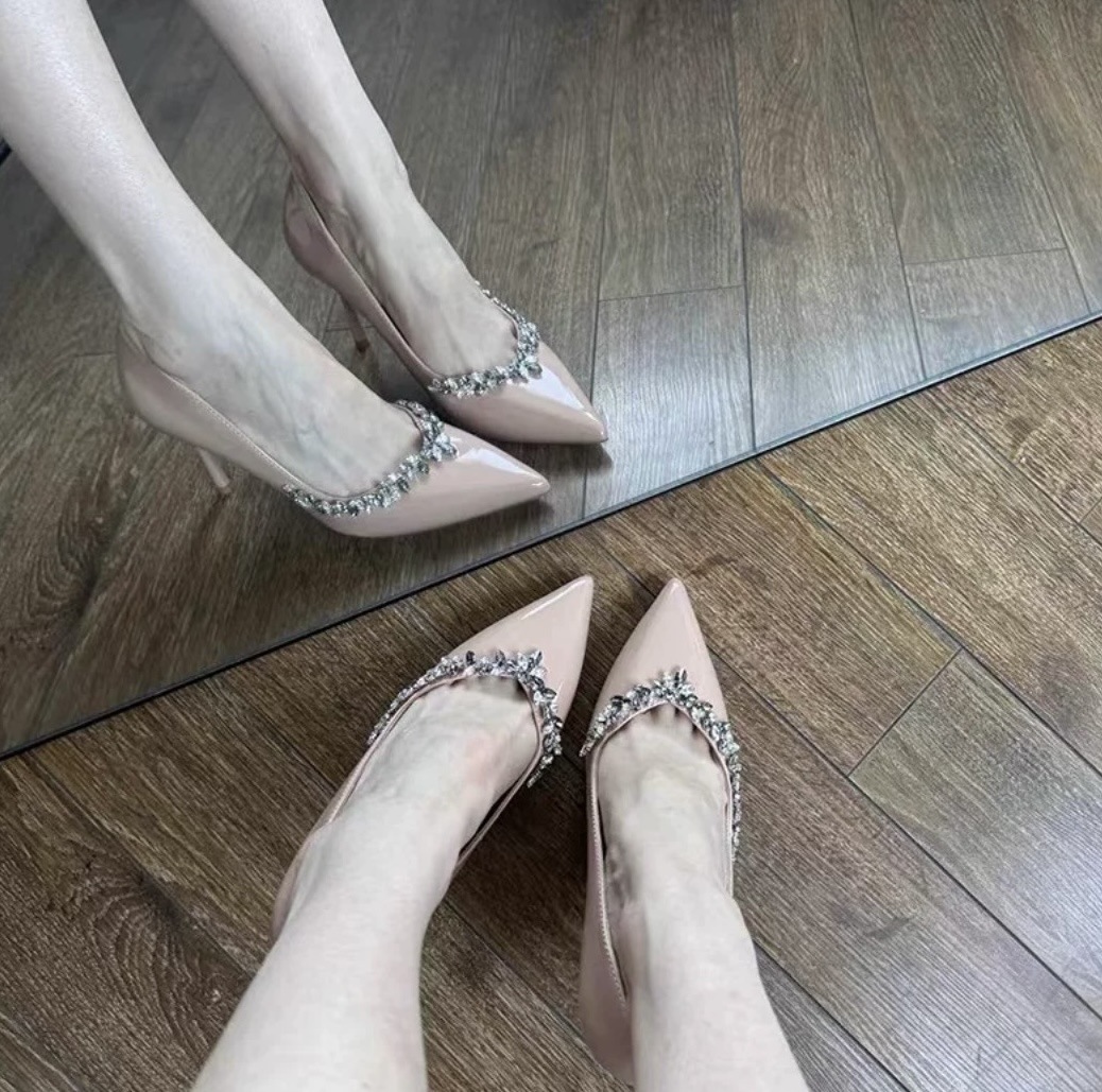 • 살구 싱글 슈즈 글로시 9cm