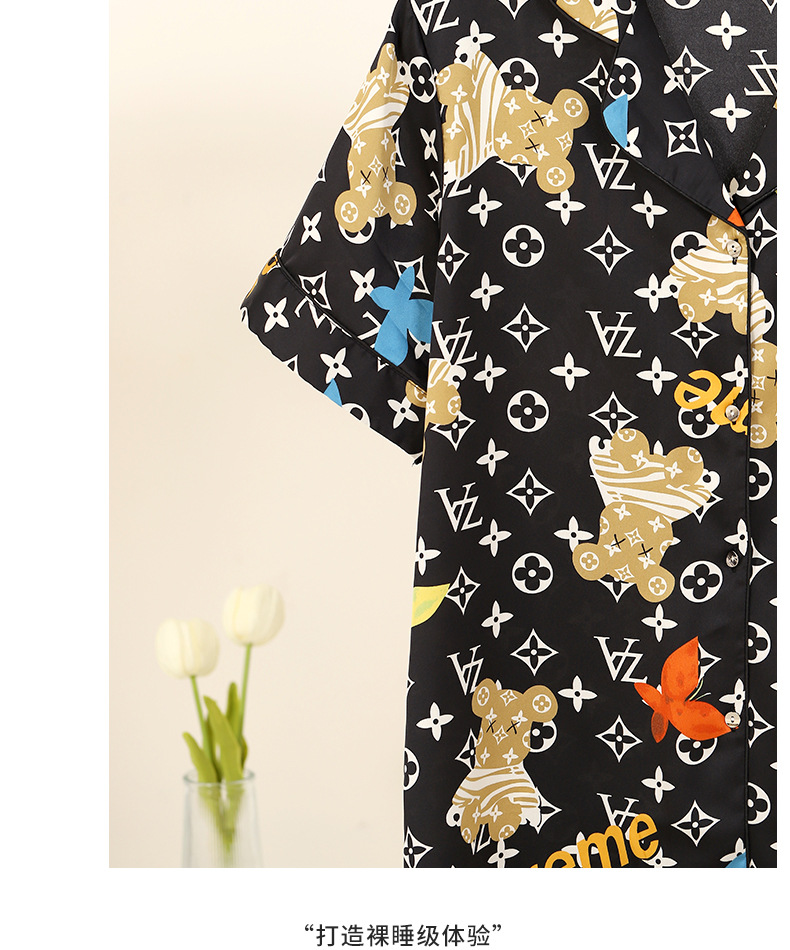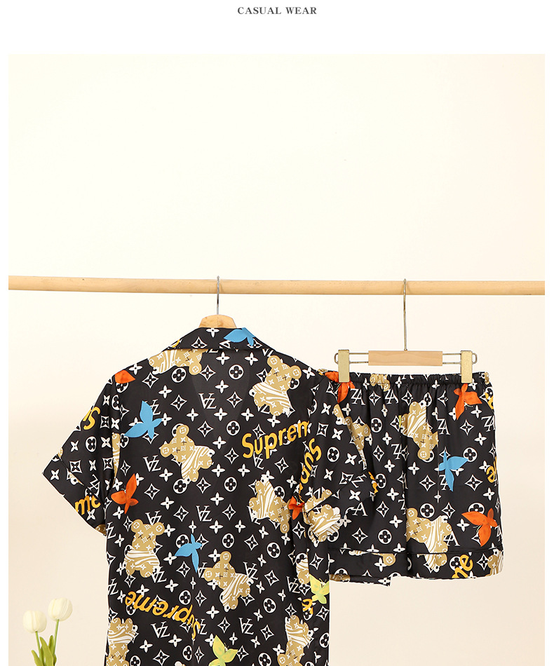 파자마 여성 2025 년 새 여름 아이스 실크 반팔 Ins 스타일 얇은 V 스타일 홈 의류 인터넷 연예인 세트 남성 아우터웨어스토어 가기