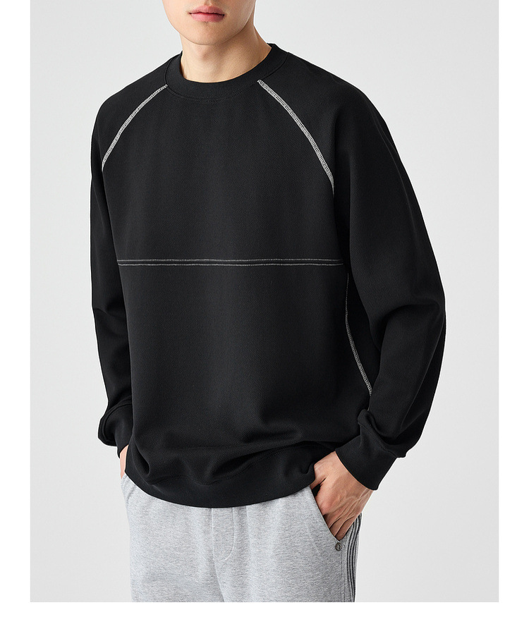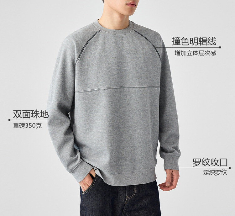 모마이크 구조적 디자인 남성 스웨트셔츠 2025 가을 신상 컬러 배색 라운드넥 스웨트셔츠 남성용 55749