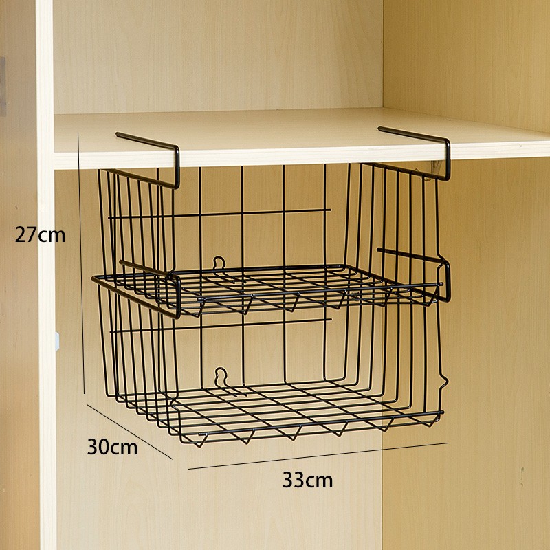 • 검정색 2단 쌓을 수 있는 하단 걸이형 바구니 [확대형, 높이 확장형, 옷장 정리 가능]★✦