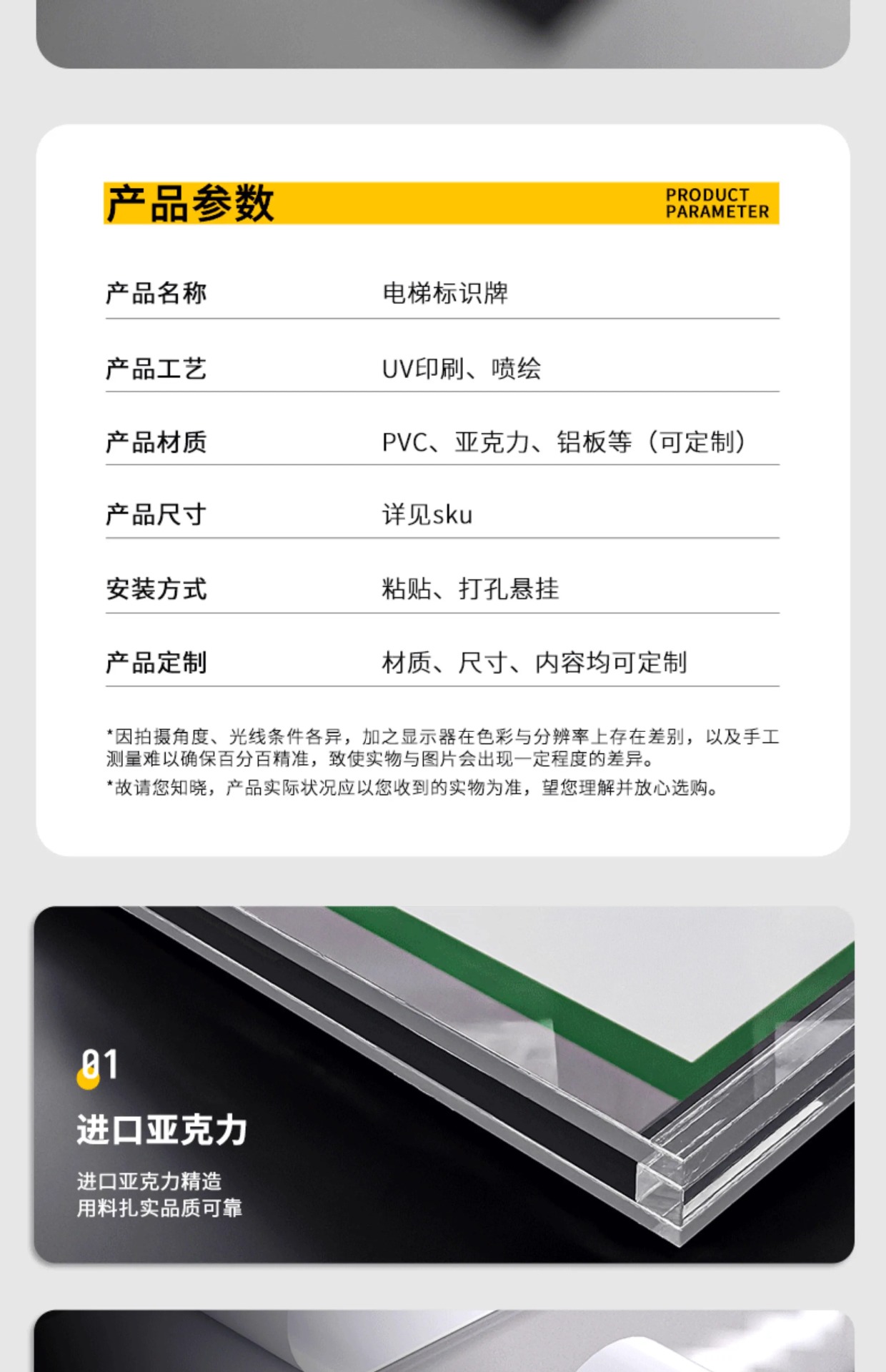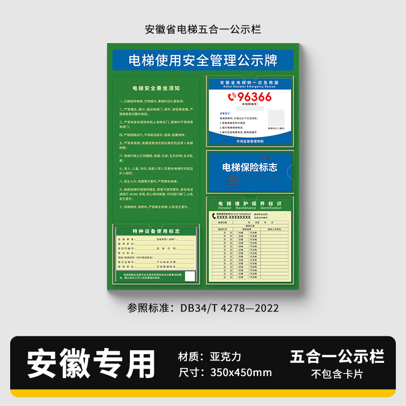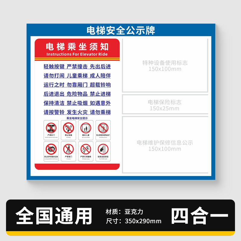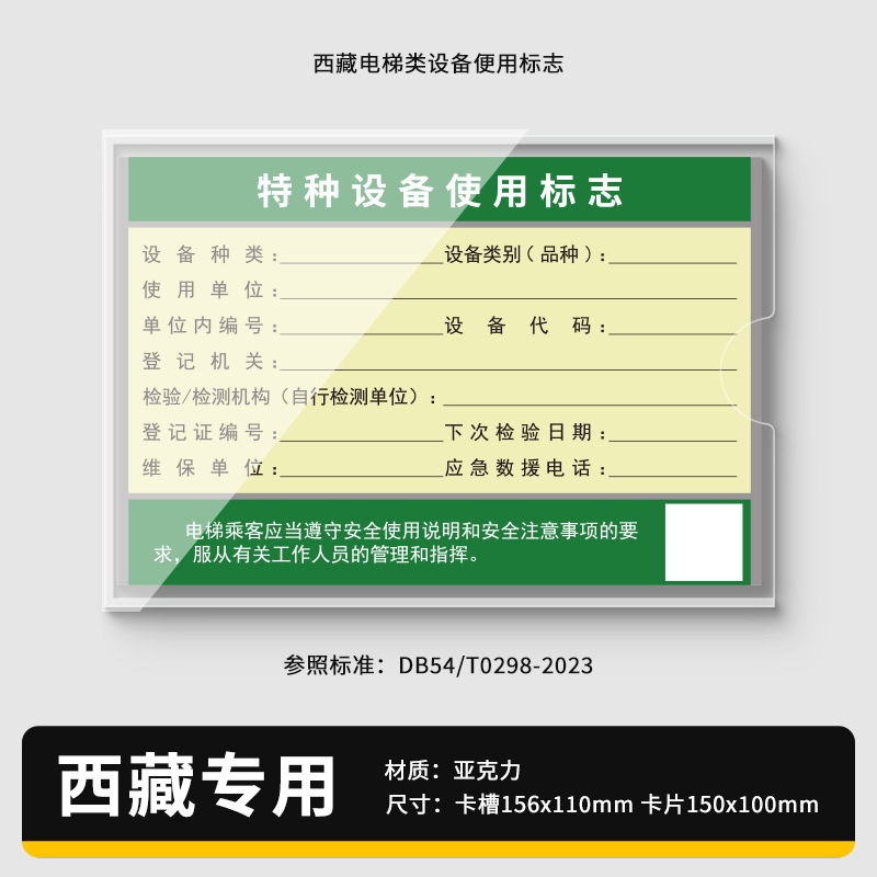 엘리베이터 특수 장비 사용 표시, 화재 구조 유지 보수 품질 검사 맞춤형 아크릴 상자 게시판스토어 가기