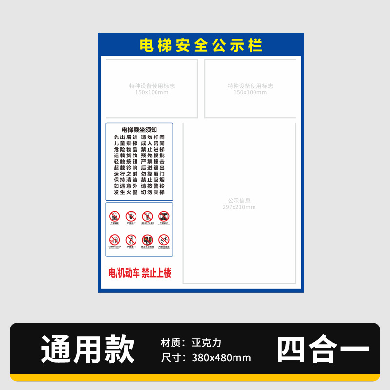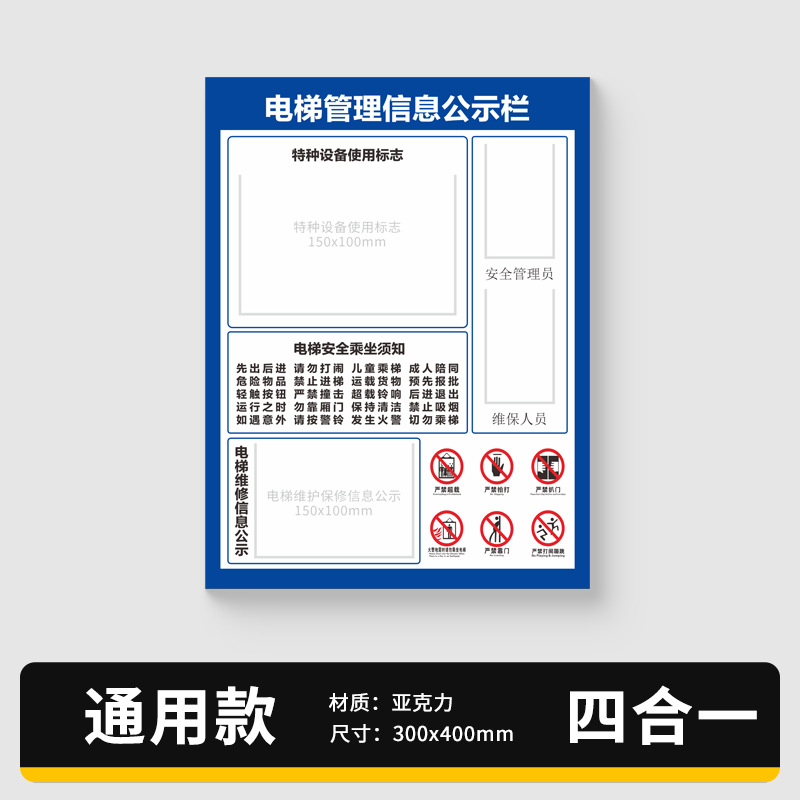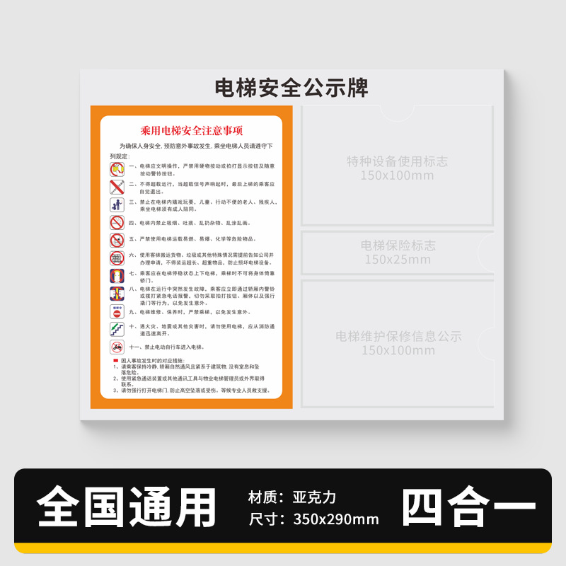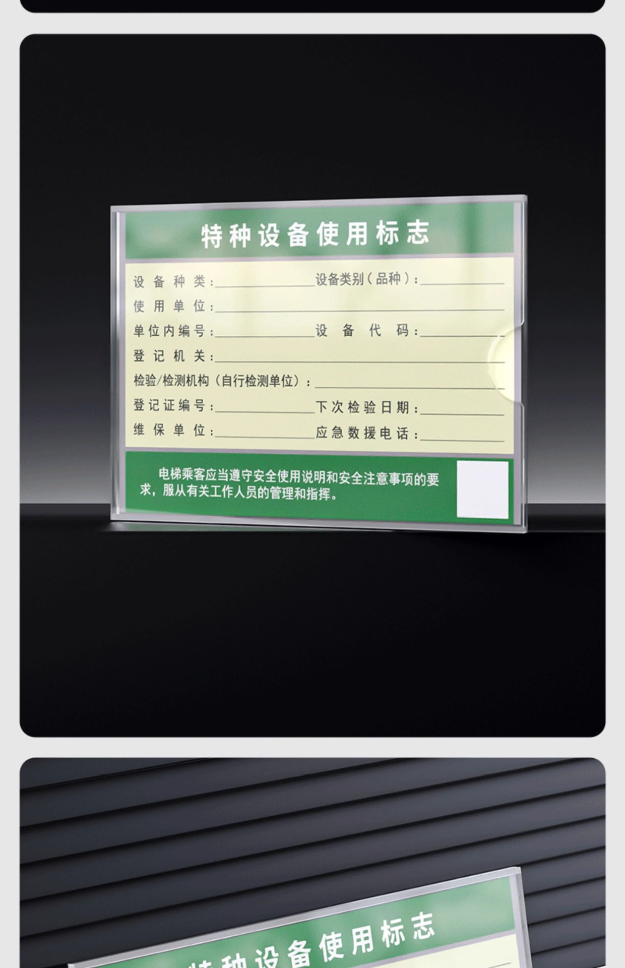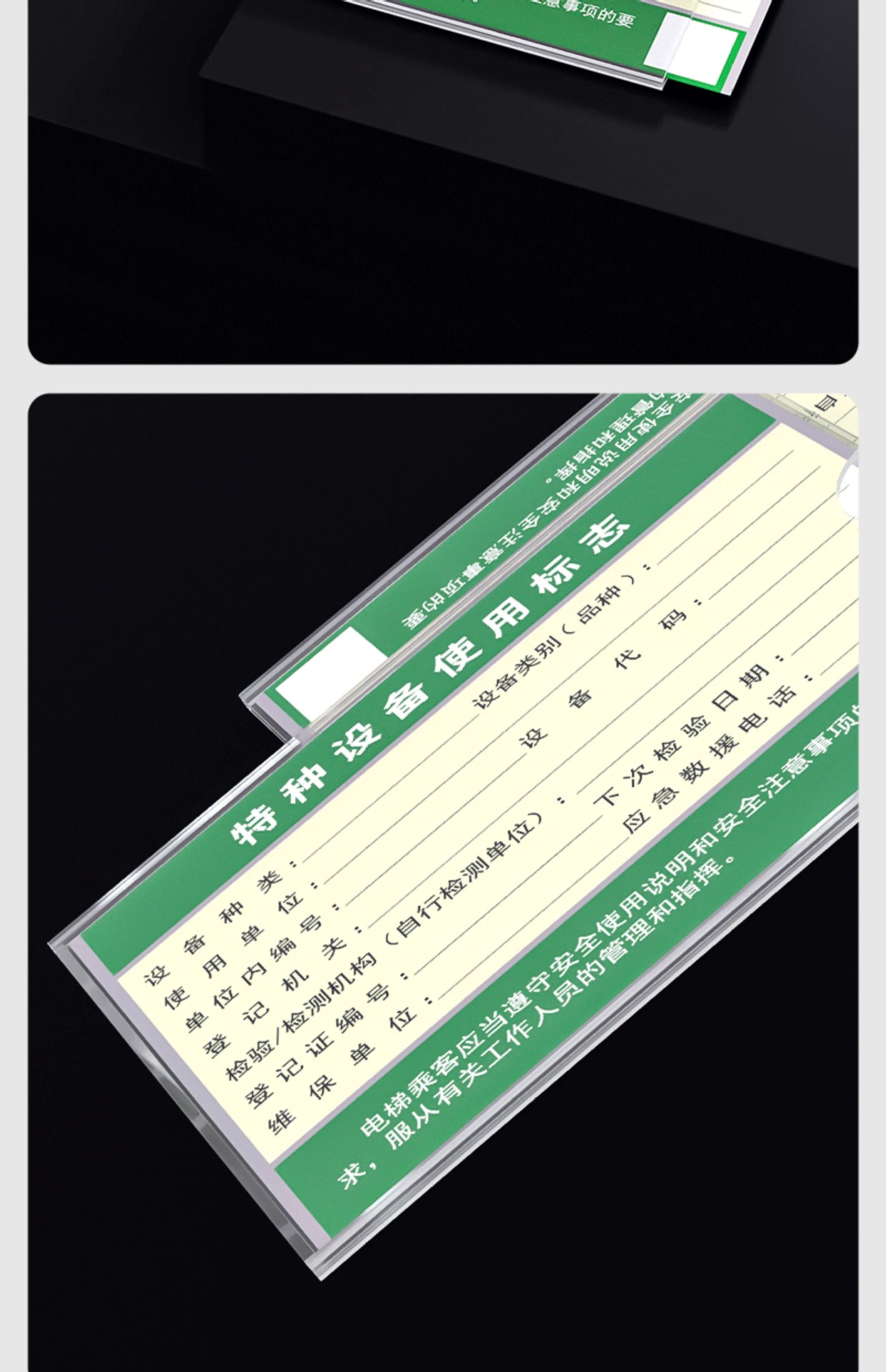 电梯特种设备使用标志牌 消防救援维保质检定制亚克力盒子公告栏