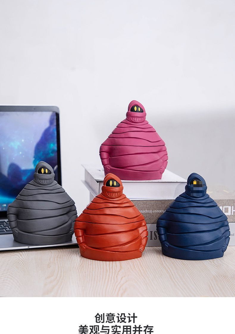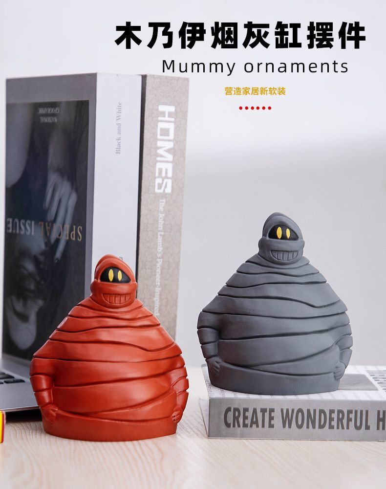∝창의적인 만화 미라 귀여운 데스크탑 재떨이 뚜껑이 있는 거실 홈 방진 고급 장식 장식품
