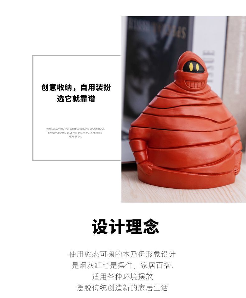 ∝창의적인 만화 미라 귀여운 데스크탑 재떨이 뚜껑이 있는 거실 홈 방진 고급 장식 장식품스토어 가기