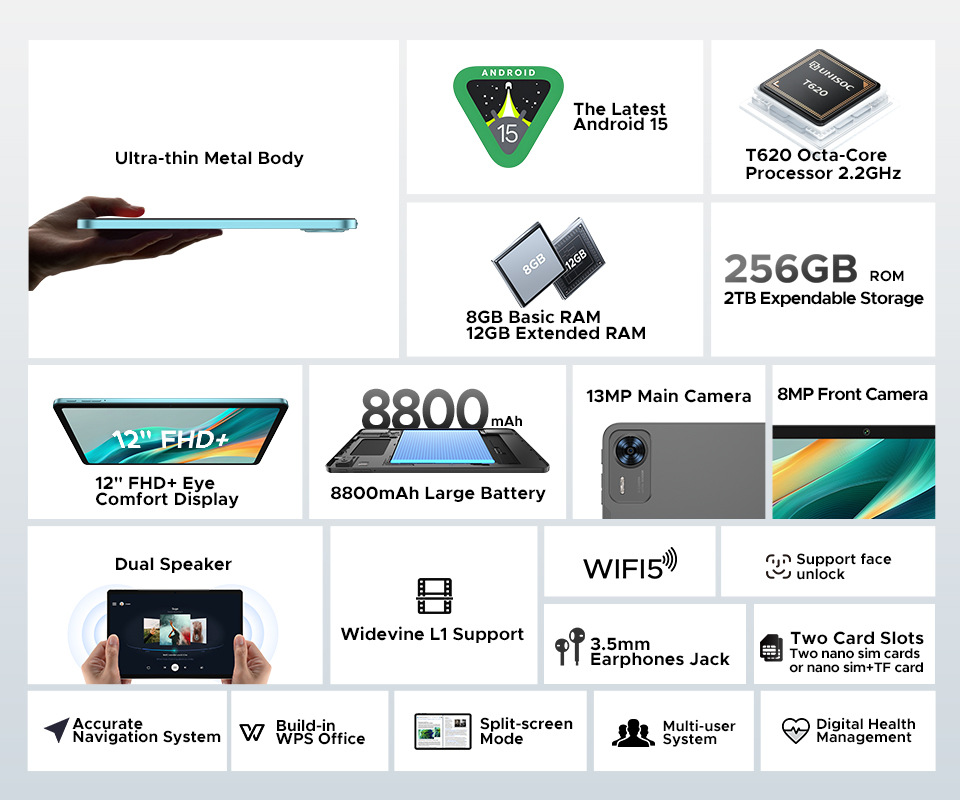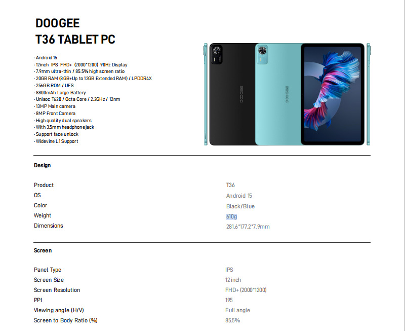 DOOGEE T36 새로운 11inch HD 안드로이드 스마트 태블릿 컴퓨터 사무실 학습 태블릿
