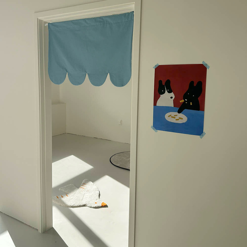 Ins 솔리드 컬러 펀치 프리 패브릭 도어 커튼 절반 커튼 아기 침실 절반 파티션 커튼 주방 쉼터 커튼스토어 가기