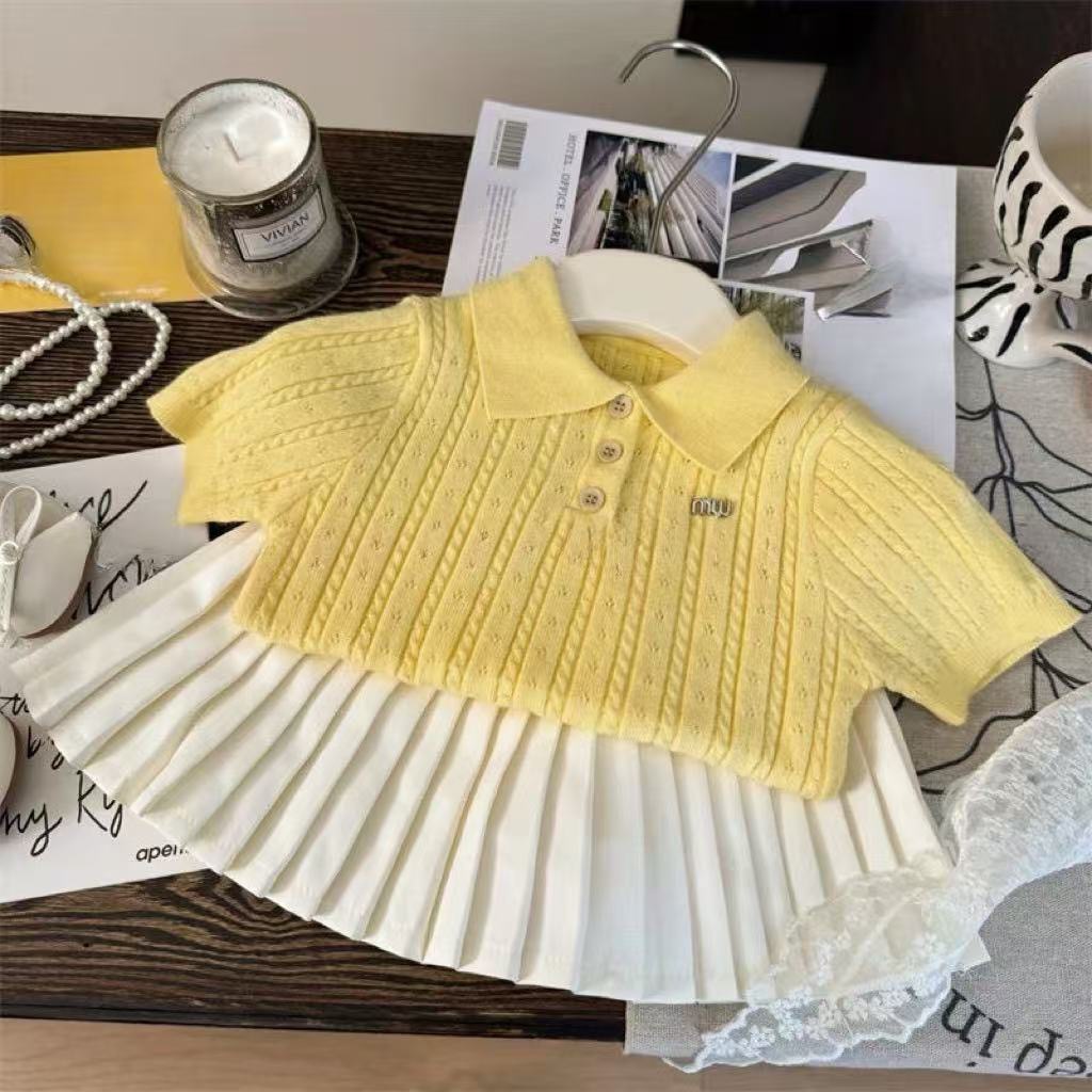 어린이 여자 세트 여름 2025 새로운 공주 스타일 소녀의 여름 니트 반팔 주름 치마 투피스 스커트스토어 가기