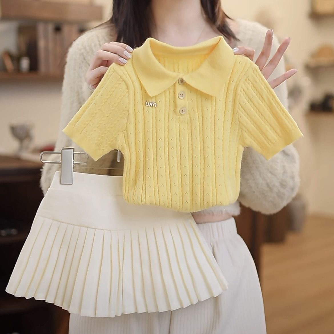 어린이 여자 세트 여름 2025 새로운 공주 스타일 소녀의 여름 니트 반팔 주름 치마 투피스 스커트