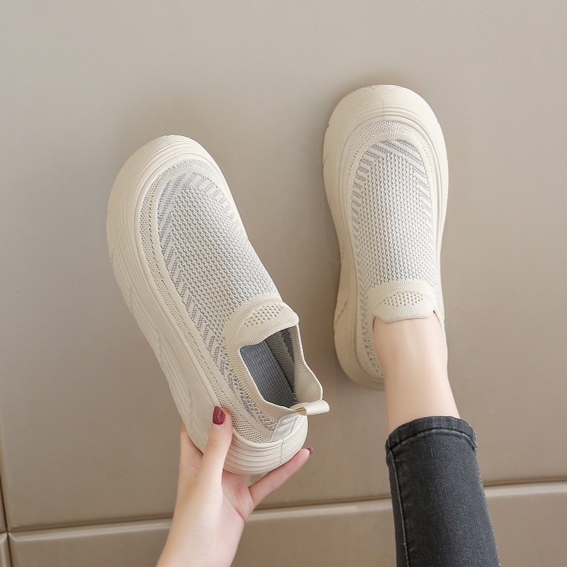 똥 밟는 느낌의 여성을 위한 플라이니트 메쉬 스니커즈, 2025년 신상 여름 통기성 다용도 슬립온 플라이니트 캐주얼 슈즈스토어 가기