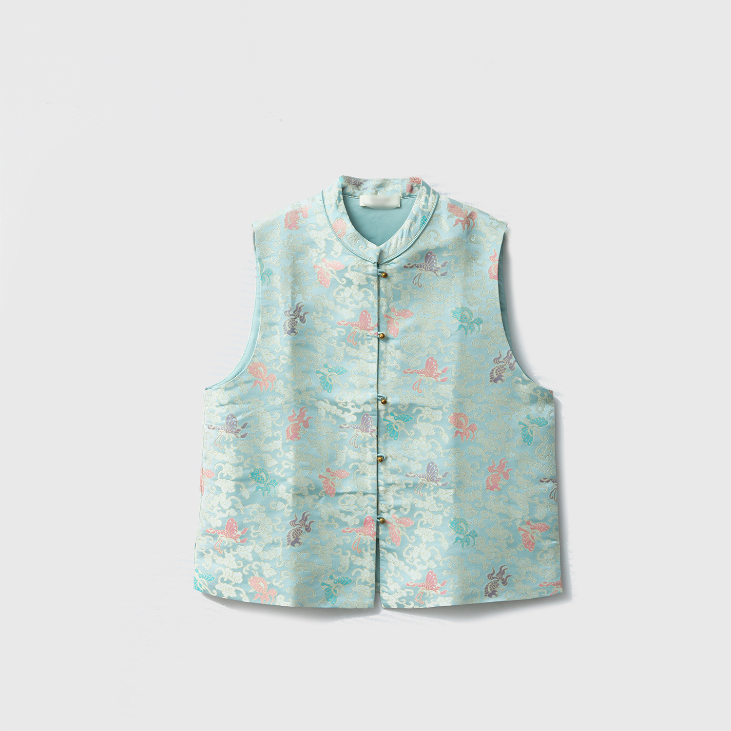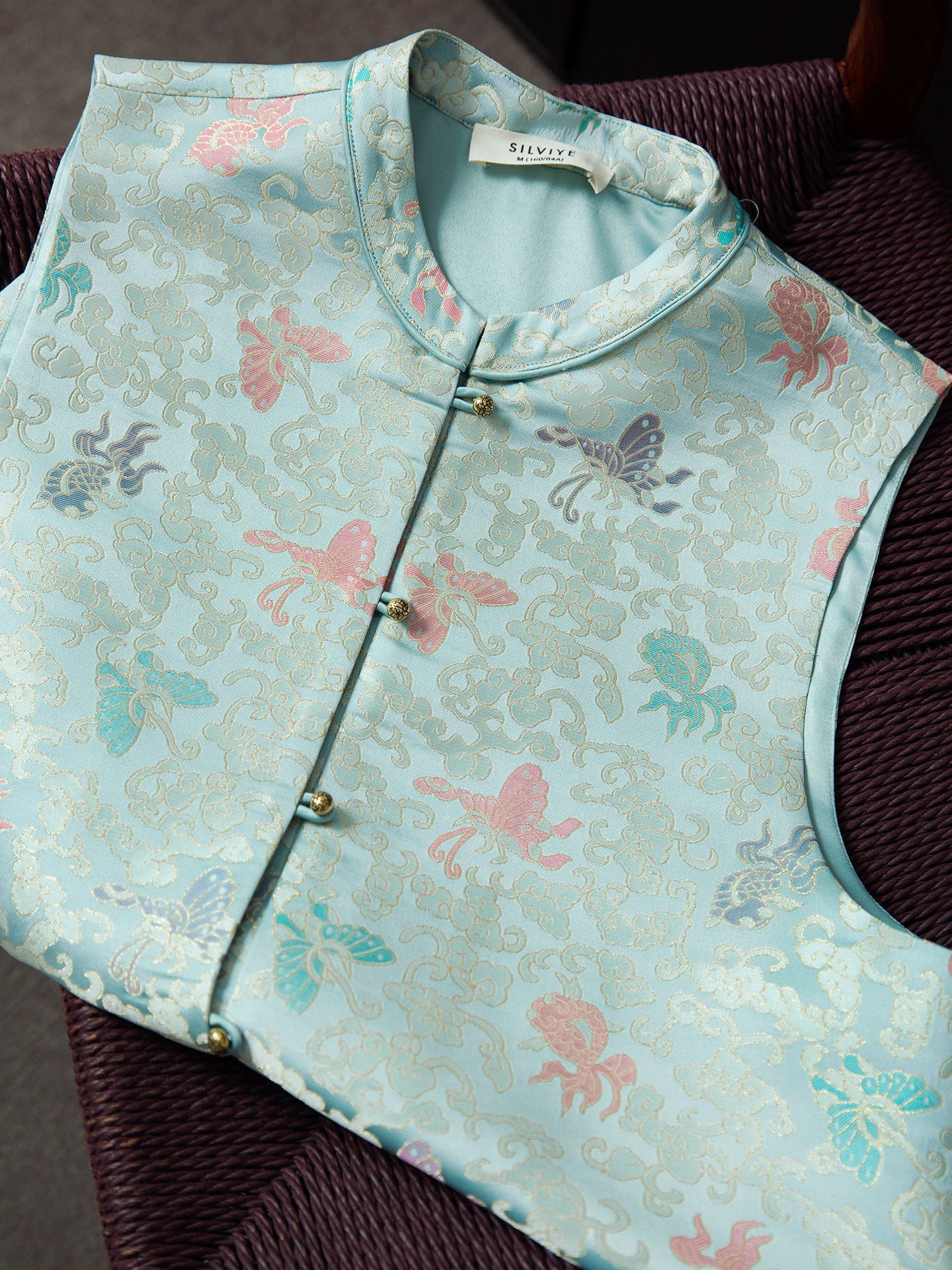 실크 송 진 새로운 중국 스타일 국가 스타일 조끼 100 뽕나무 실크 느슨한 세트 칼라 낮은 스윙 분할 조끼 봄 새로운 스타일스토어 가기