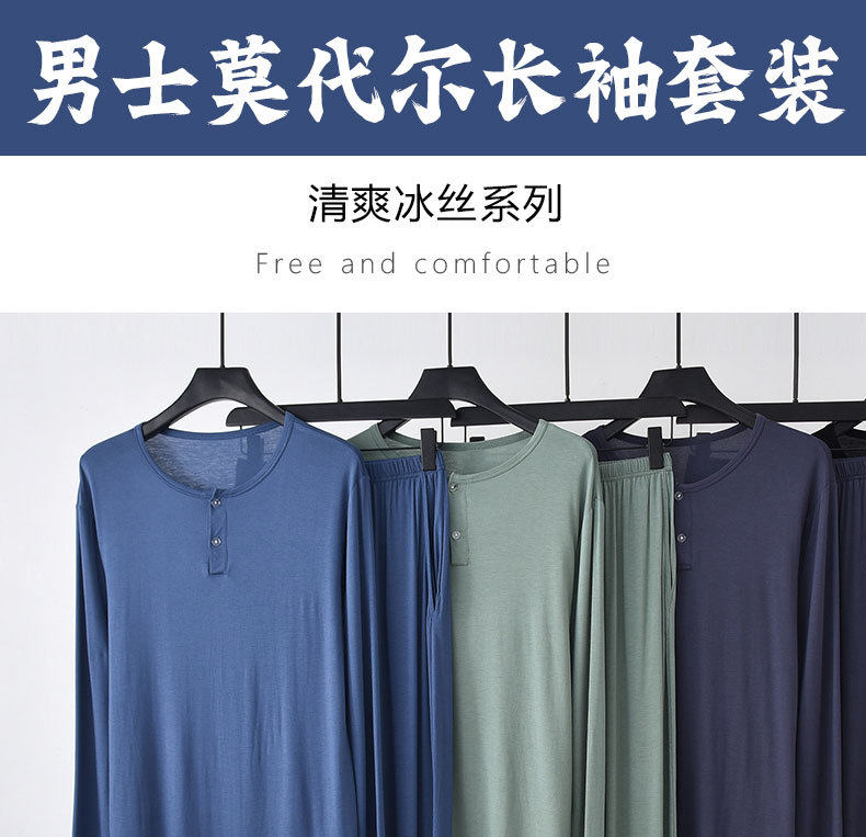남자 잠옷 2025 새로운 봄과 가을 여름 모달 얇은 긴 소매 중년 아빠 겉옷 홈 세트스토어 가기