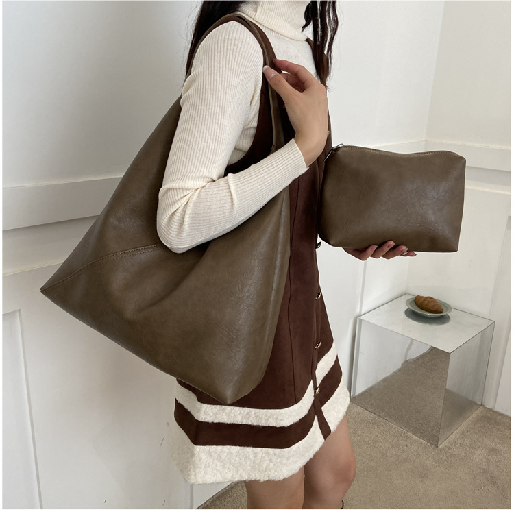 크로스보더 숄더백 2025 봄 겨드랑이 가방 여성 트렌디한 질감의 엄마 가방 캐주얼 심플 스타일 겨드랑이 가방스토어 가기