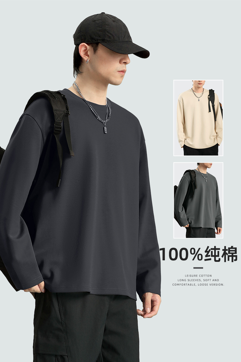 200g 콤비네이션 코튼 남성용 루즈 라운드 넥 긴팔 티셔츠 세련된 솔리드 컬러 코튼 봄 여름 멀티 컬러 바닥 셔츠스토어 가기