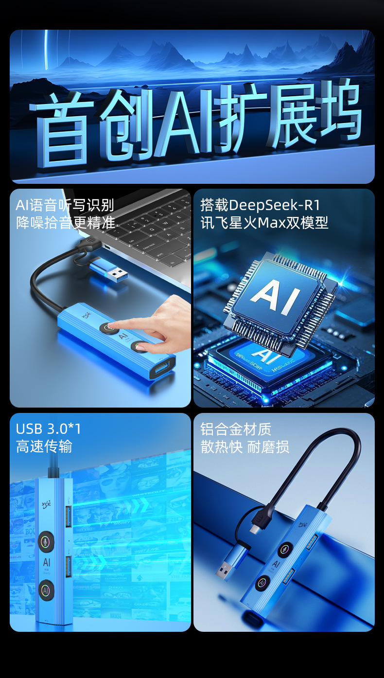 와우 AI 스마트 음성 확장 도크 USB3.0 허브 AI 허브 TYPE-C to HDMI 확장 도크