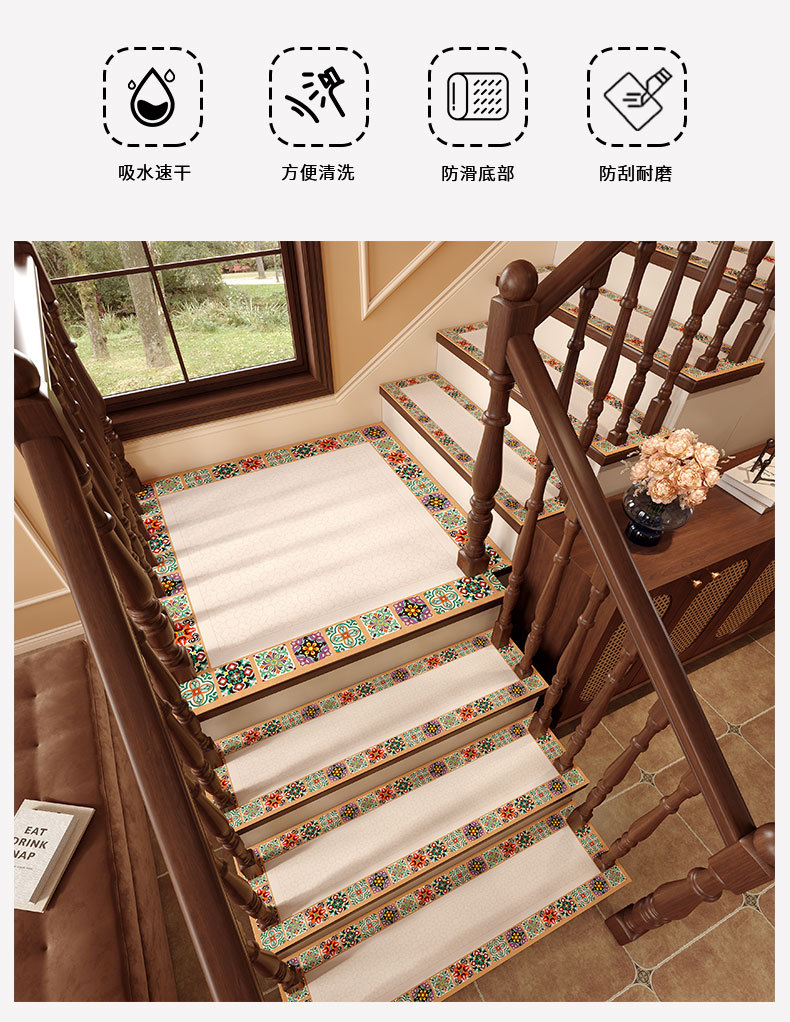 규조토 진흙 계단 매트, 닦아낼 수 있는 미끄럼 방지 및 낙하 방지 가정용 계단 매트, 단단한 목재 이중 다락방 특수 실내 카펫스토어 가기