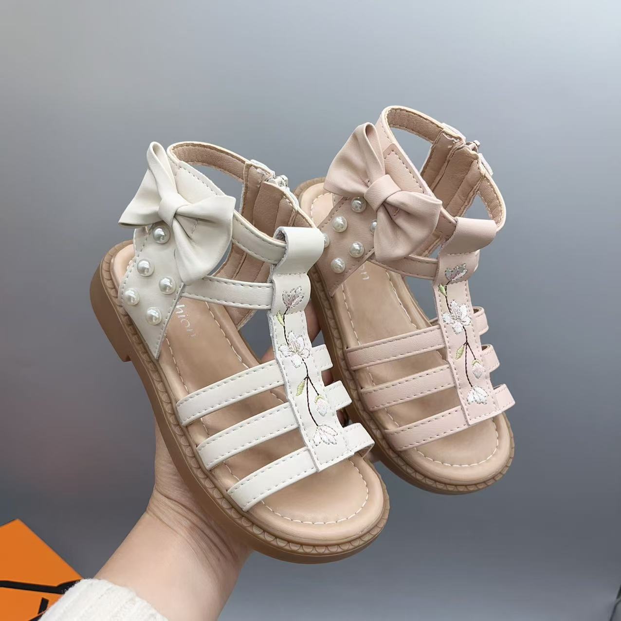 소녀 샌들 여름 새로운 패션 어린이 로마 비치 신발 부드러운 바닥 자수 열린 발가락 공주 신발