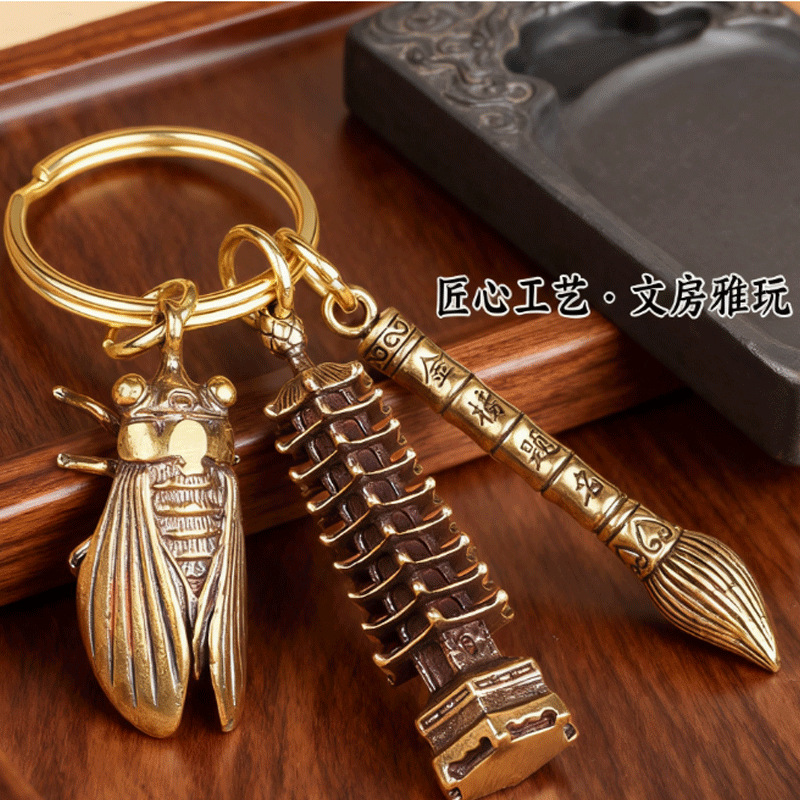[교사 추천] 황동 1 번 키체인 펜던트 황금 매미 마스코트 학생 고등학교 입학 시험 작은 선물